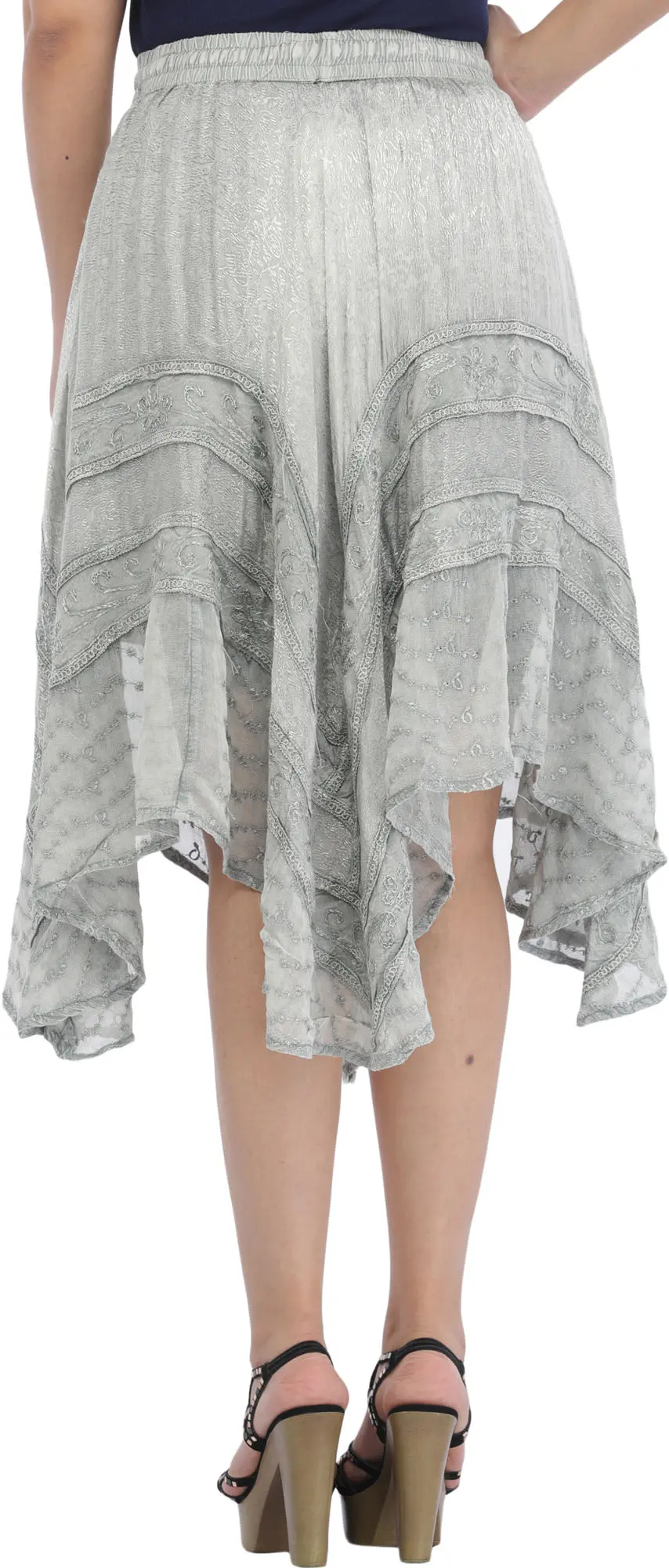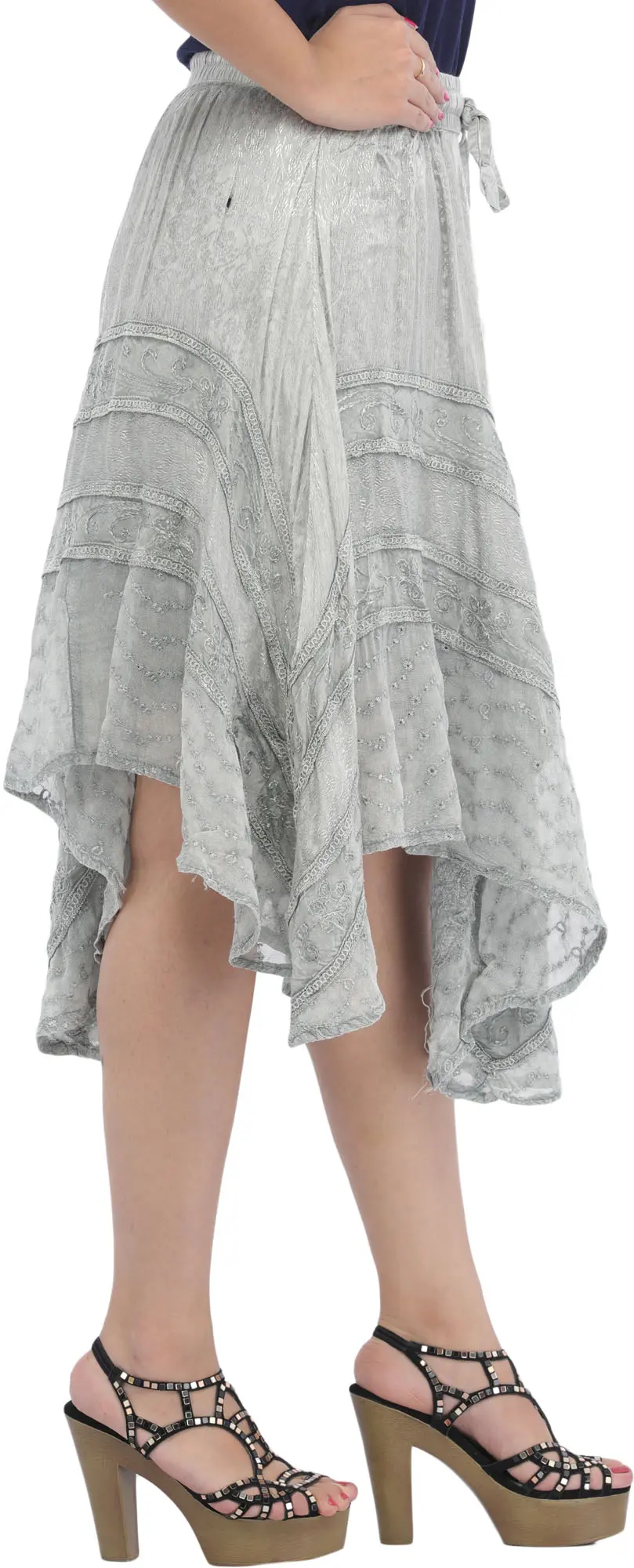 A stylish way to add a traditional touch to your casual wear, this midi-skirt is tailored from viscose lends you comfort and a charming luster. The cut of the skirt gives it an appealing feel, while the subtle threadwork all over enriches the fabric gorgeously.