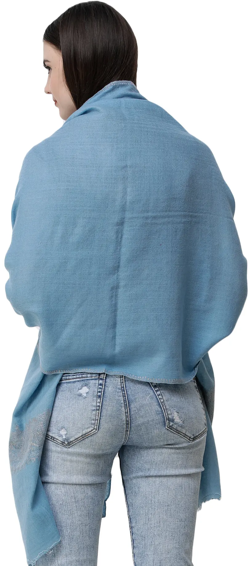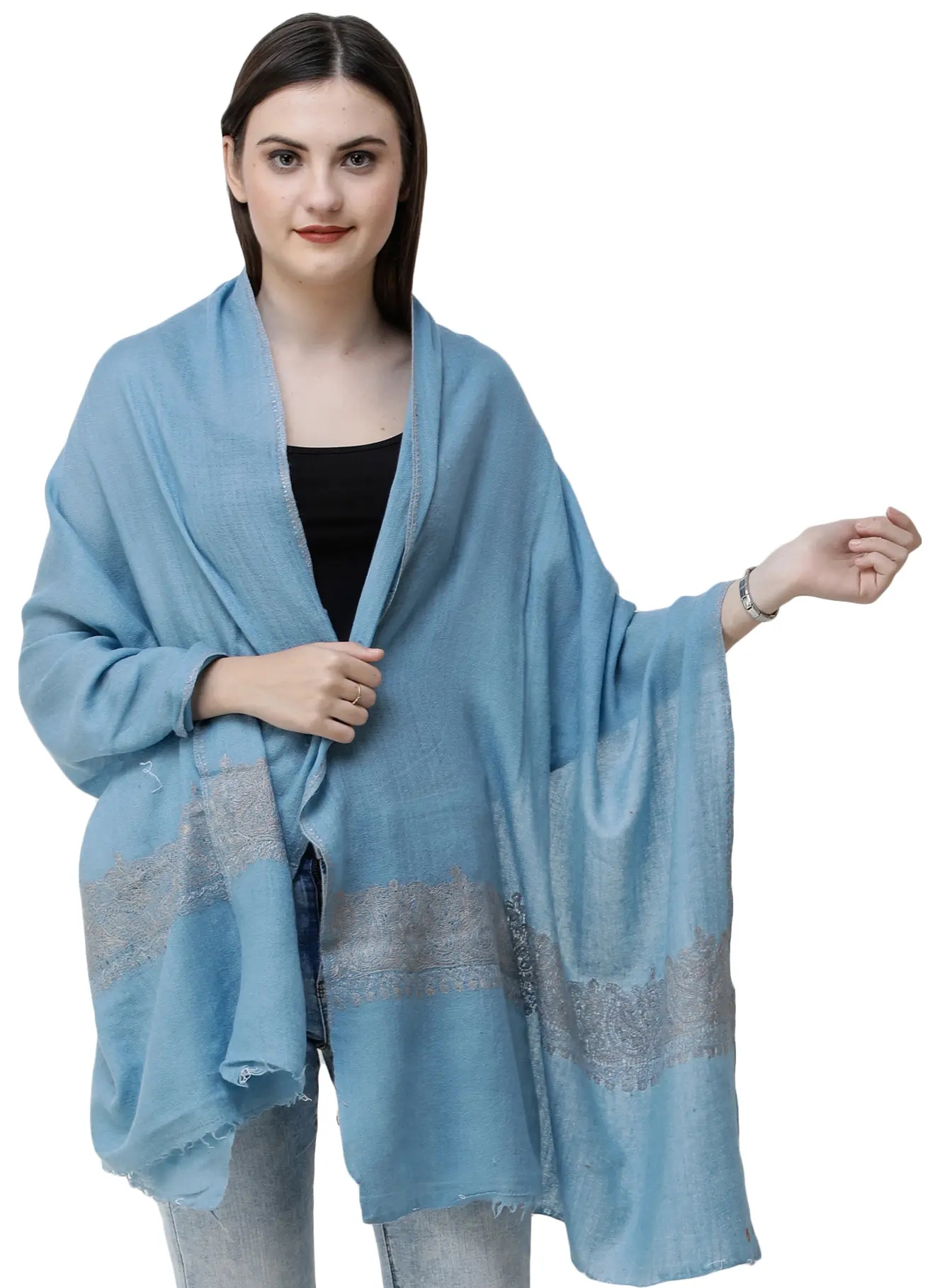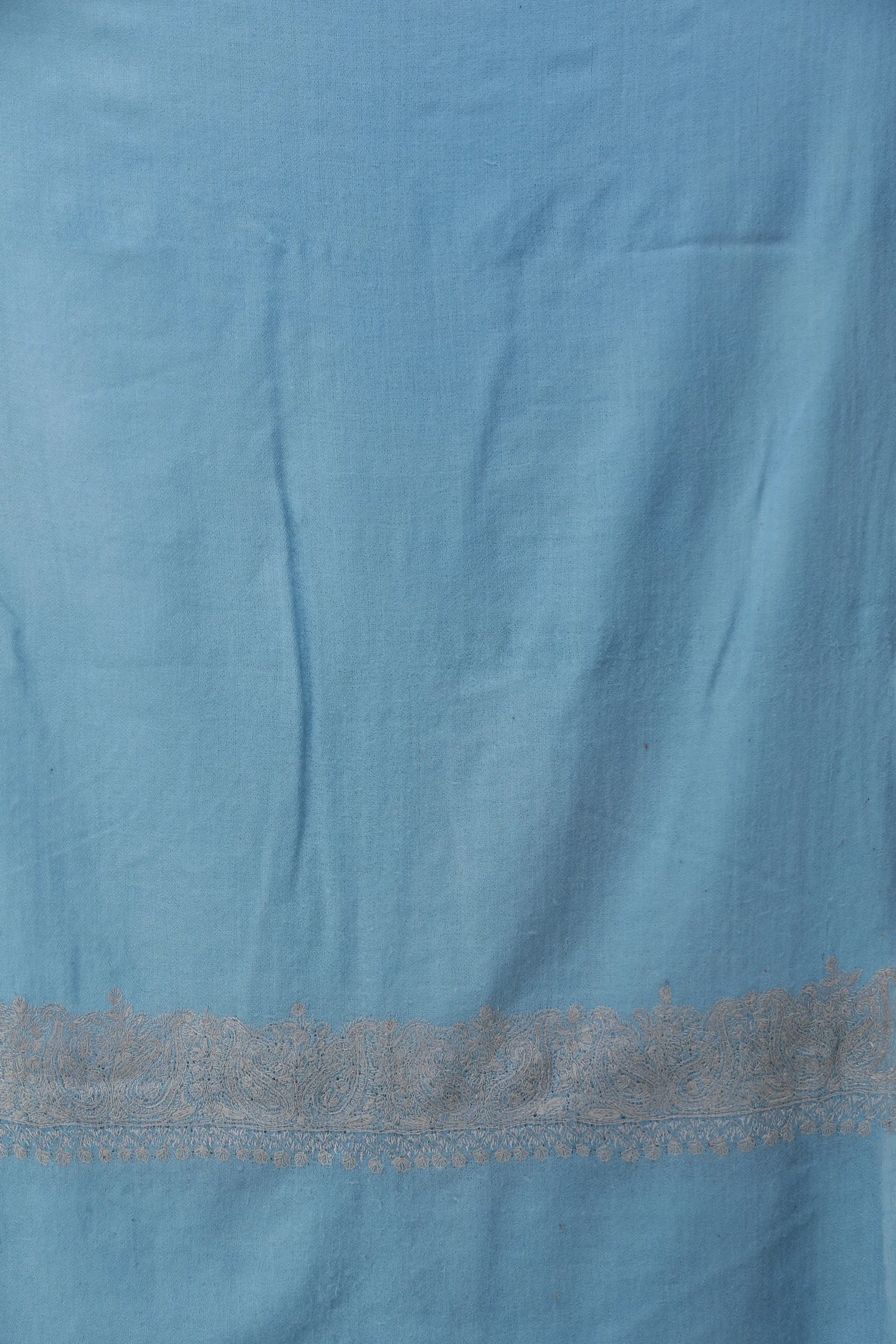 Plain Kashmiri Kingri Shawl with Sozni Hand-Embroidery on Border