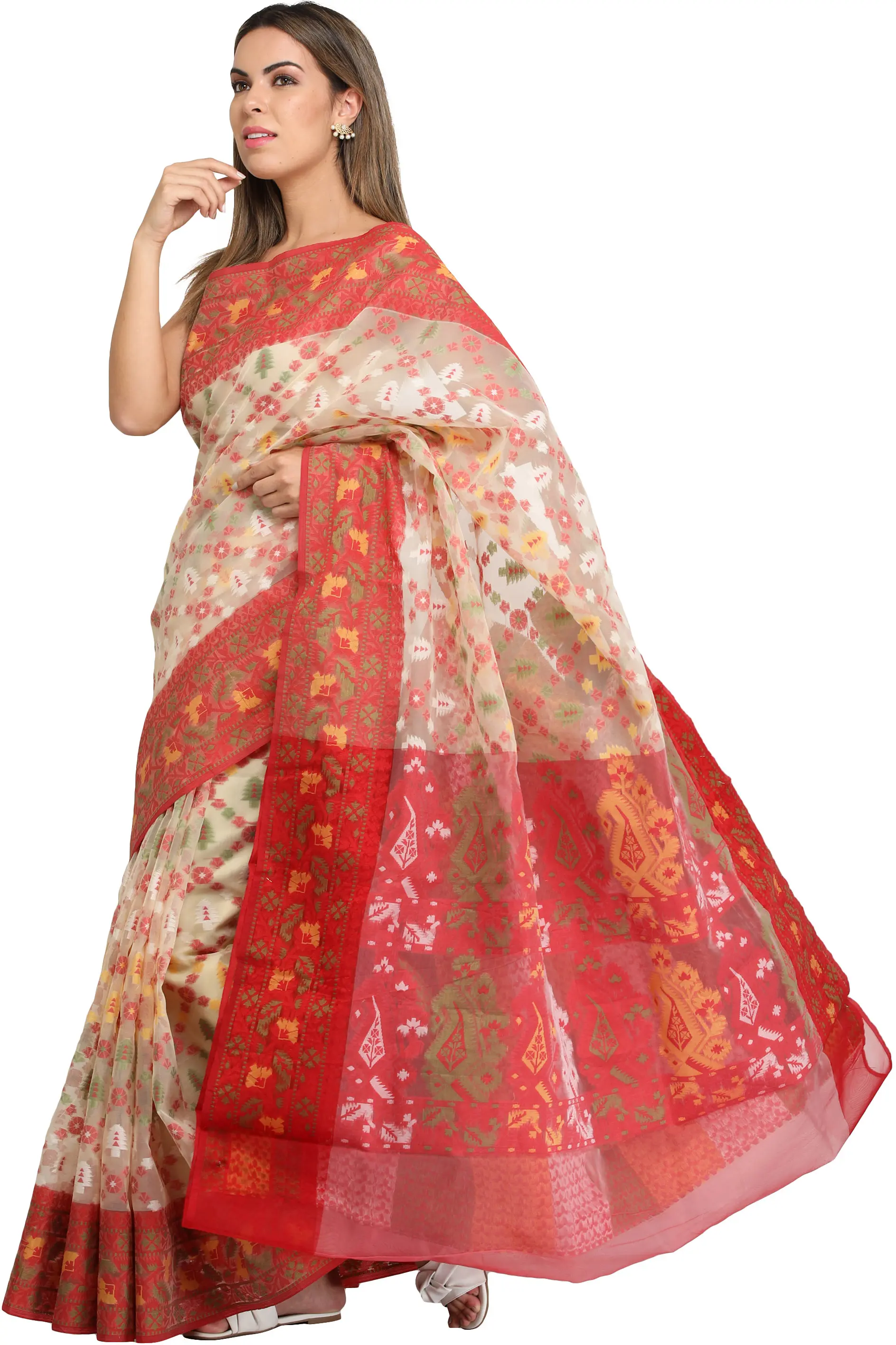 Authentic Jamdani Saree from Bangladesh Woven by Hand