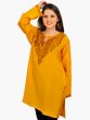 Mineral-Yelllow Kashmiri Kurti with Floral Hand-Embroidery on Neck