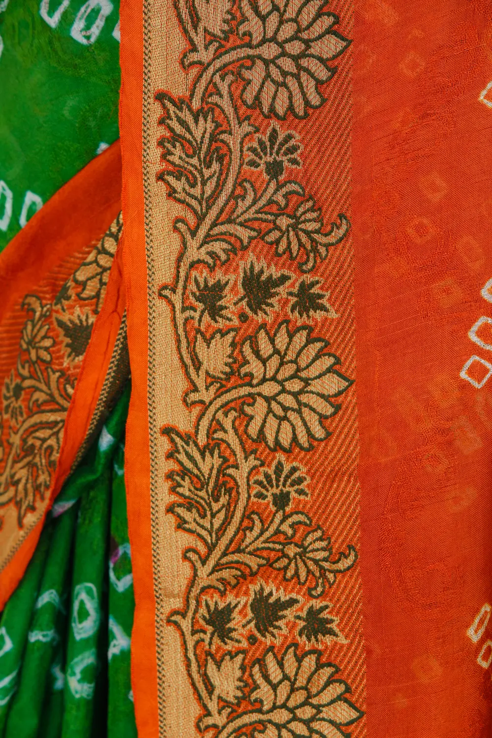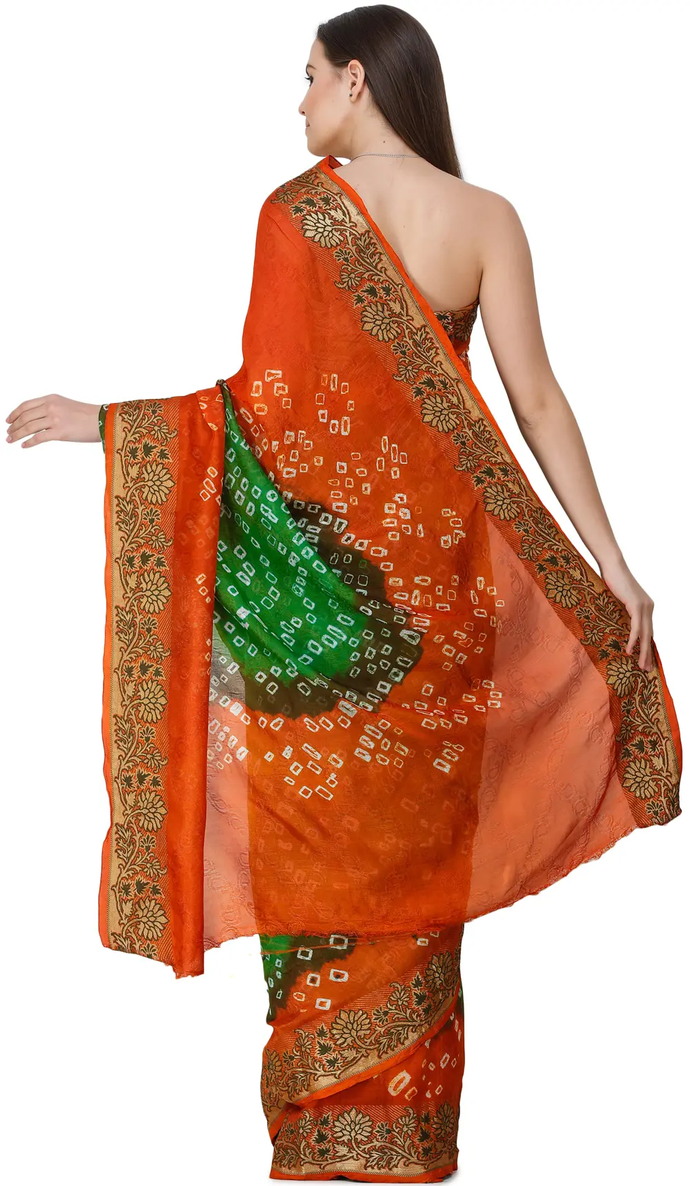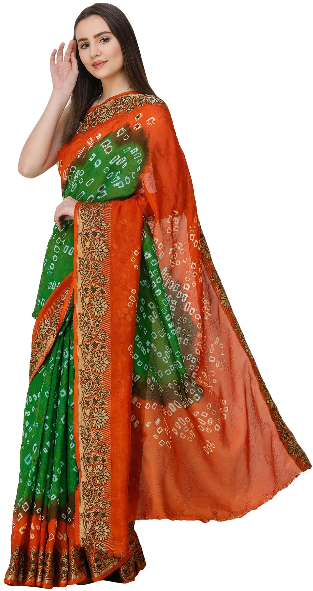 Multicolor Georgette Bandhani Dupatta with Bead-Mirror work and Gotta Patti Border