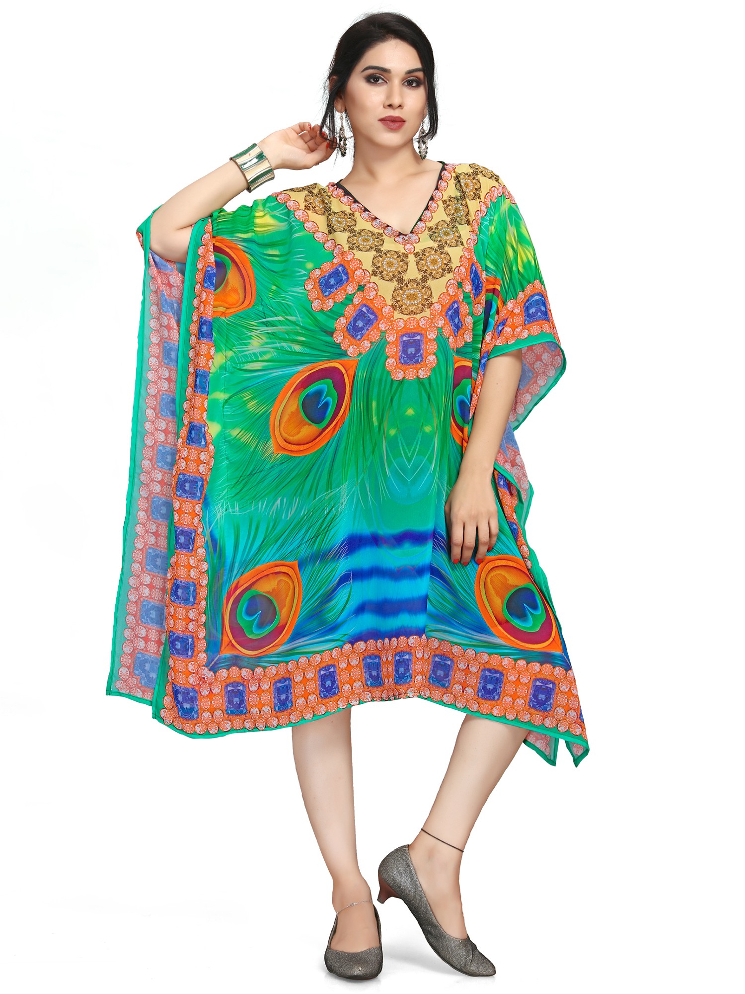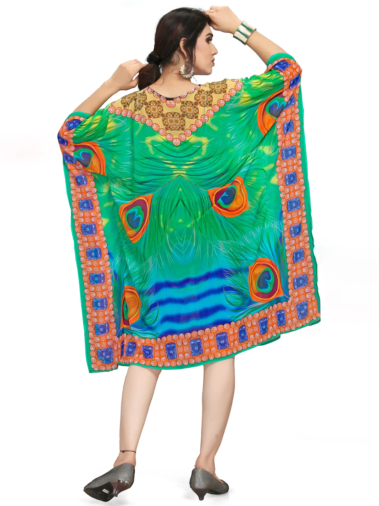 Patriot-Blue Printed V-Neck Short Kaftan with Stone work