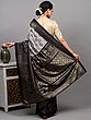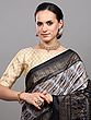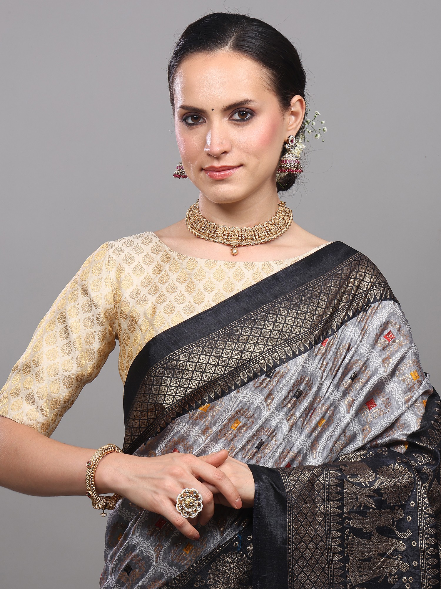 Black and Grey Pure Cotton Ikat Saree from Sambalpur with Temple Border