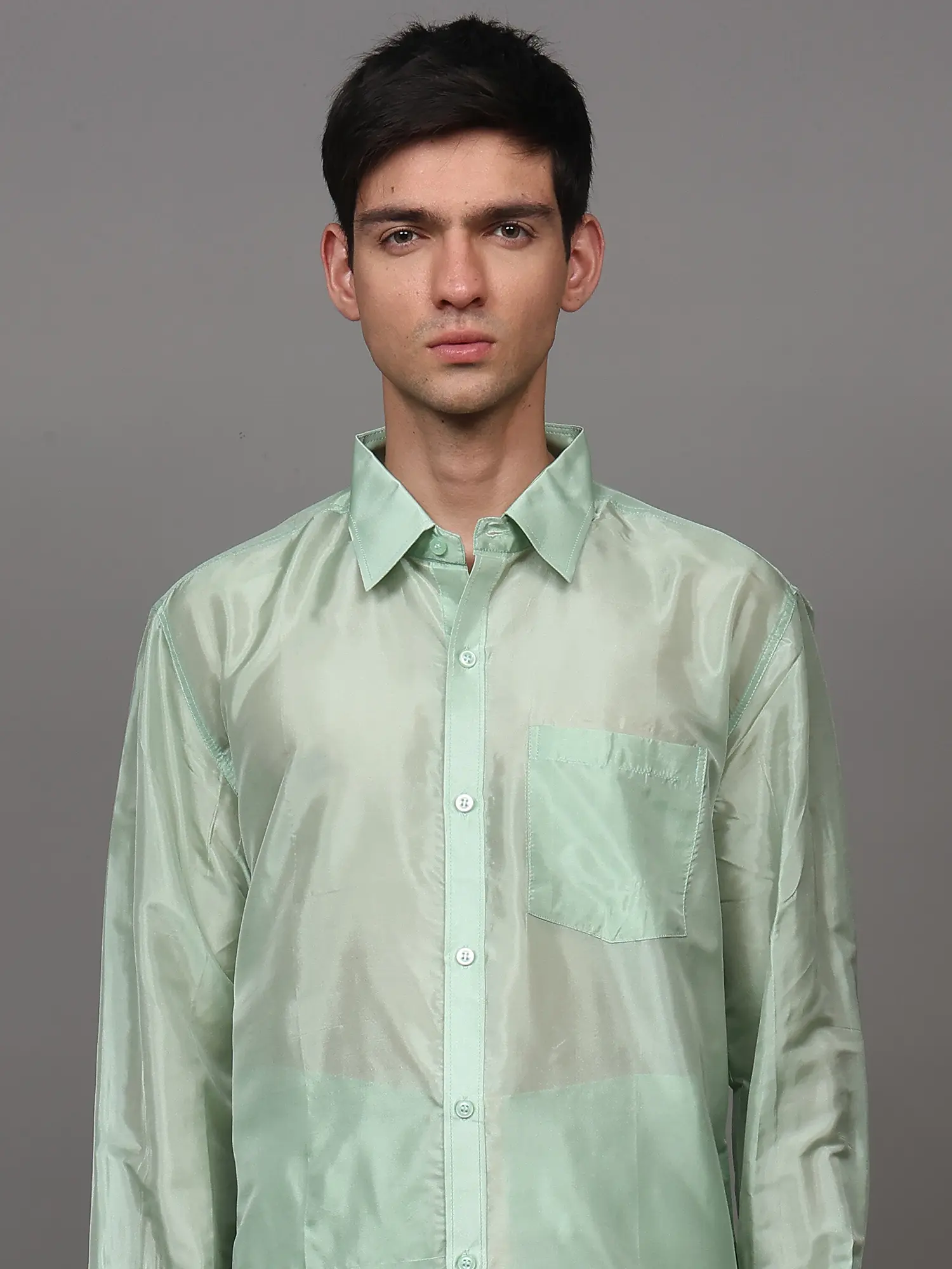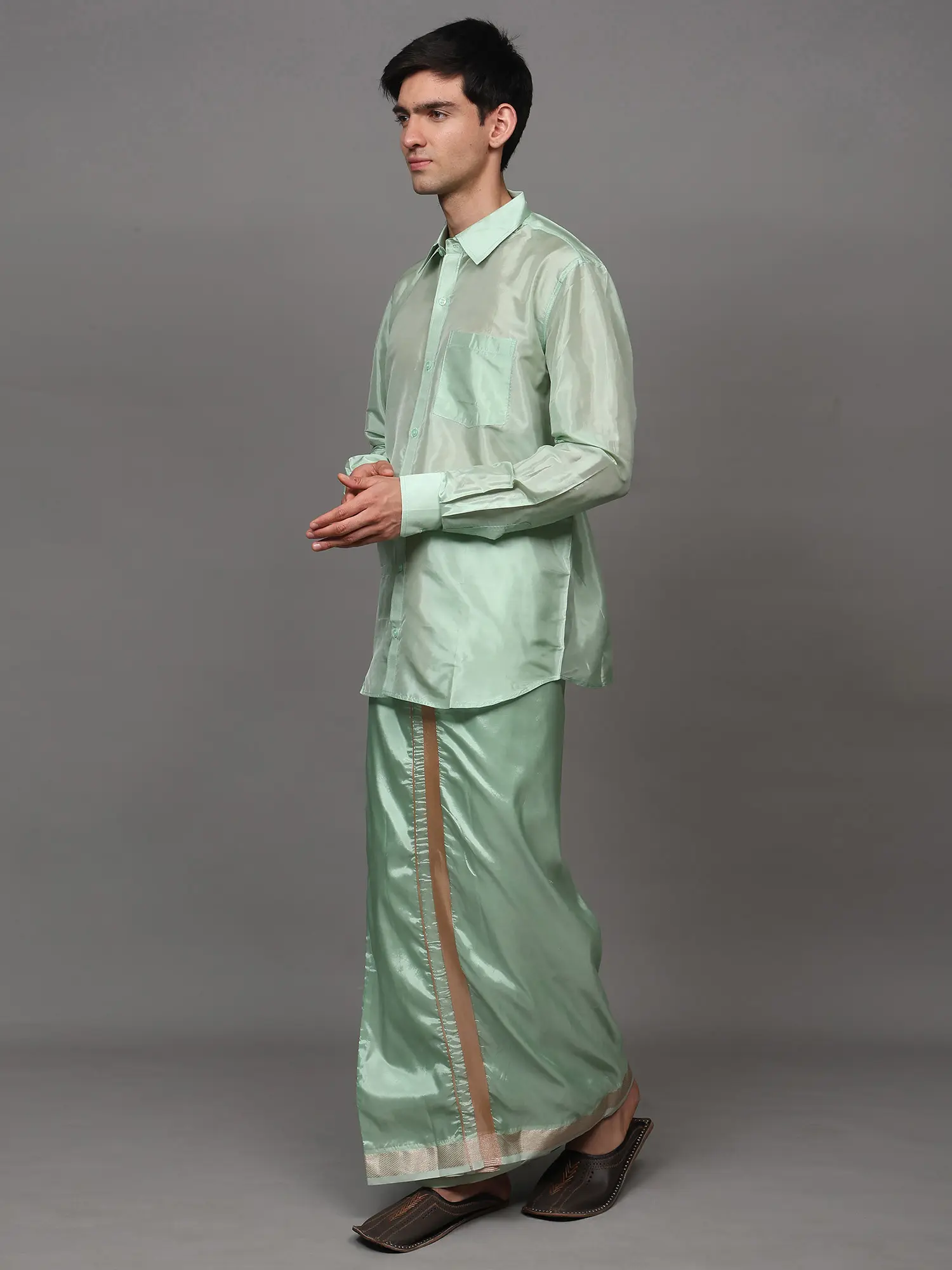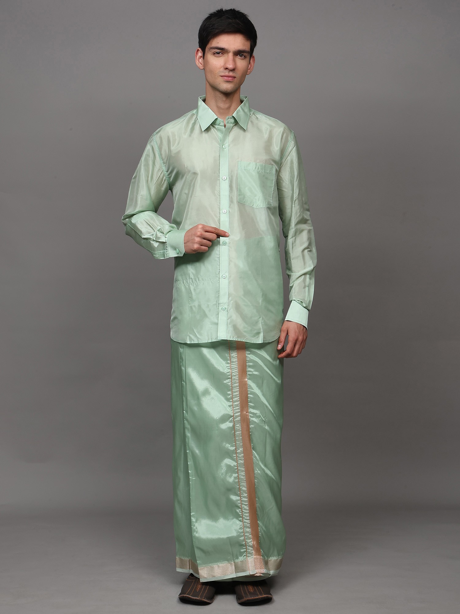 Pacific-Blue Wedding Shirt with Embroidered Motif in Black