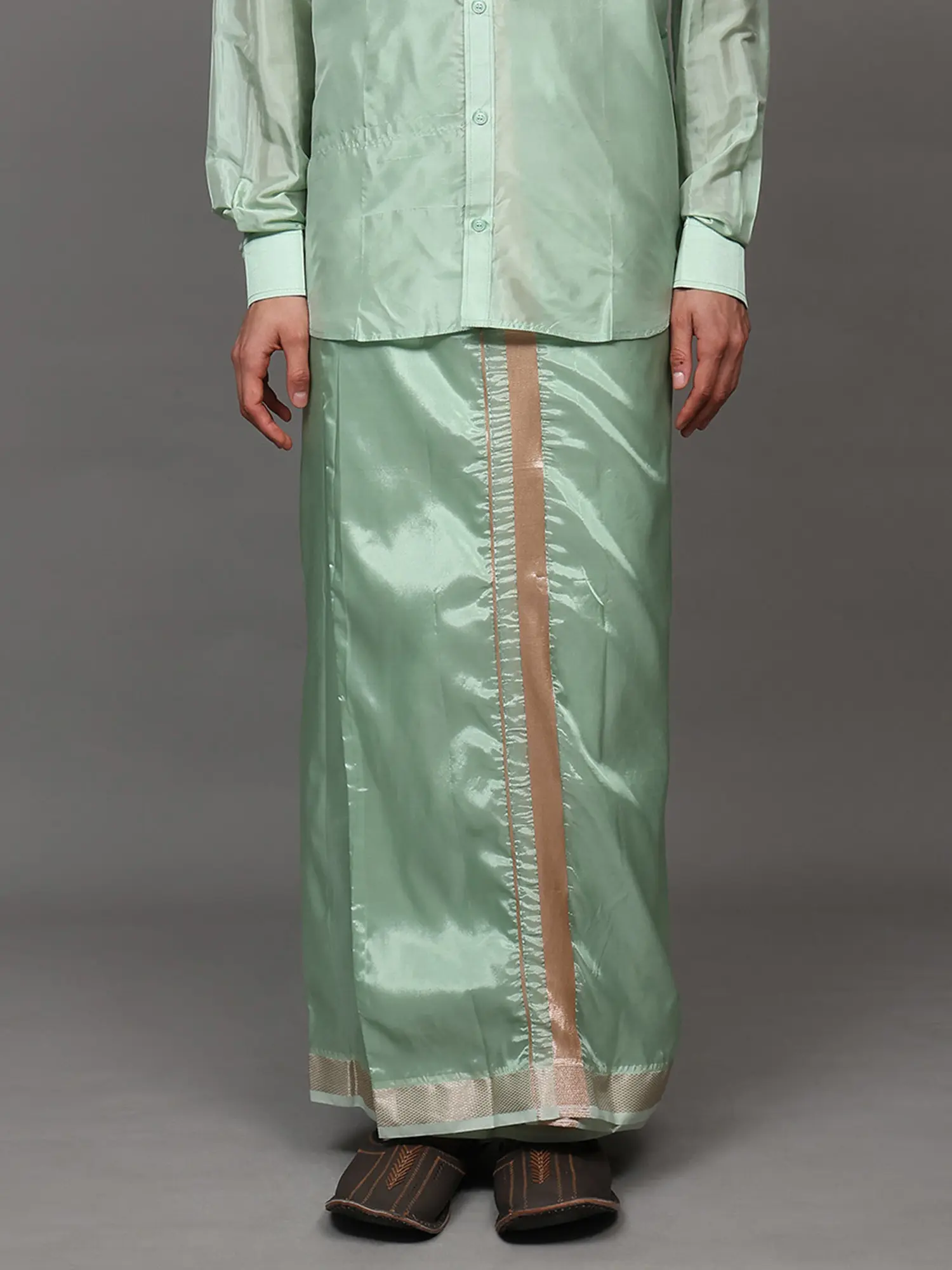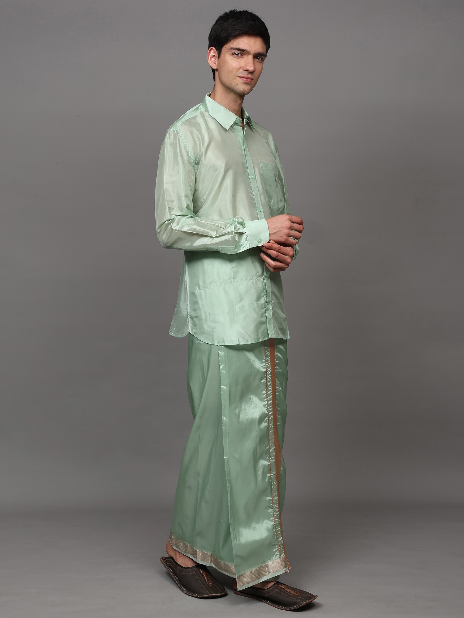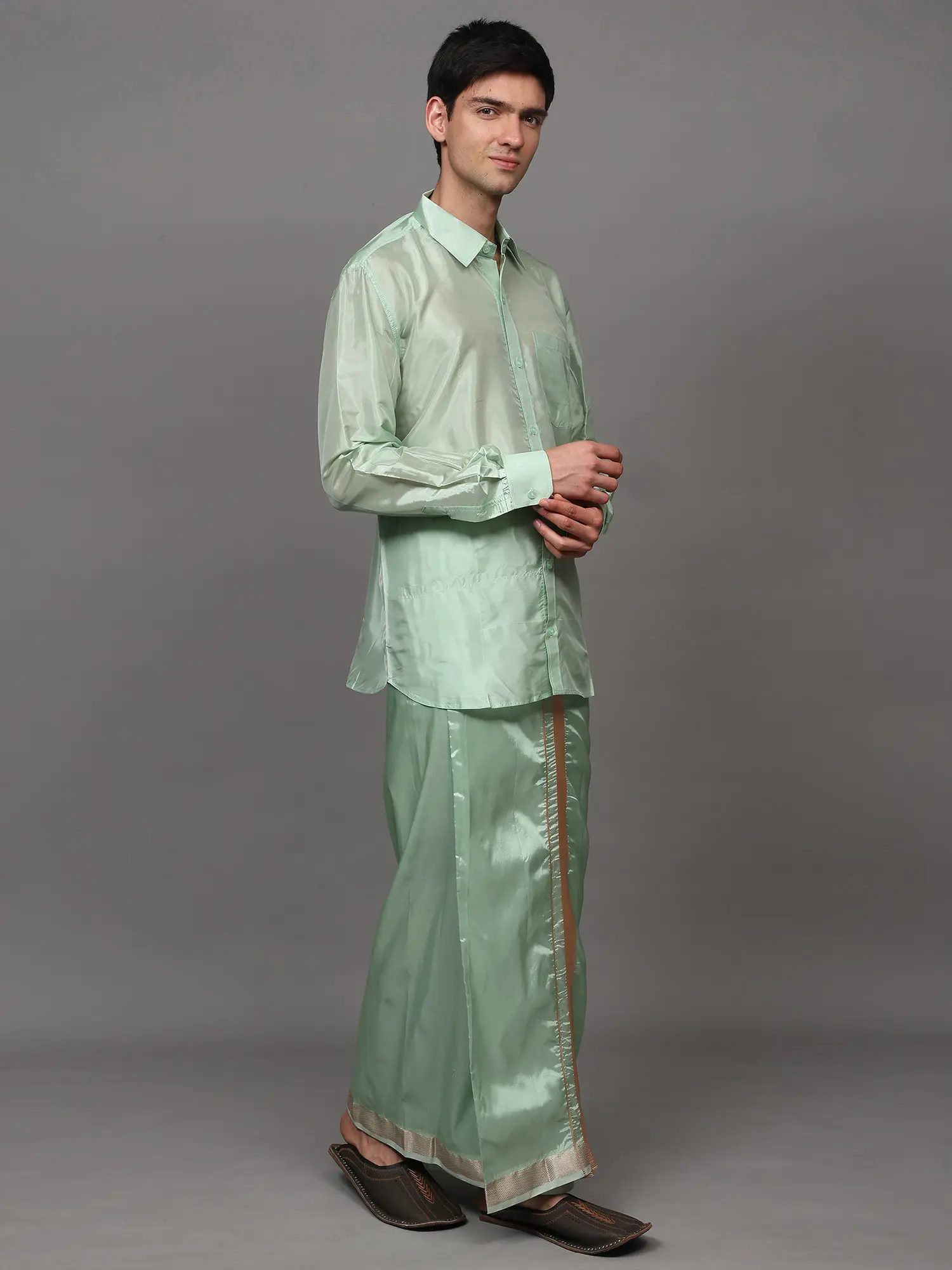 Pacific-Blue Wedding Shirt with Embroidered Motif in Black