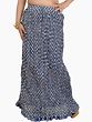 Snow-White Crushed Elastic Long Skirt with Printed Trees and Gota Border