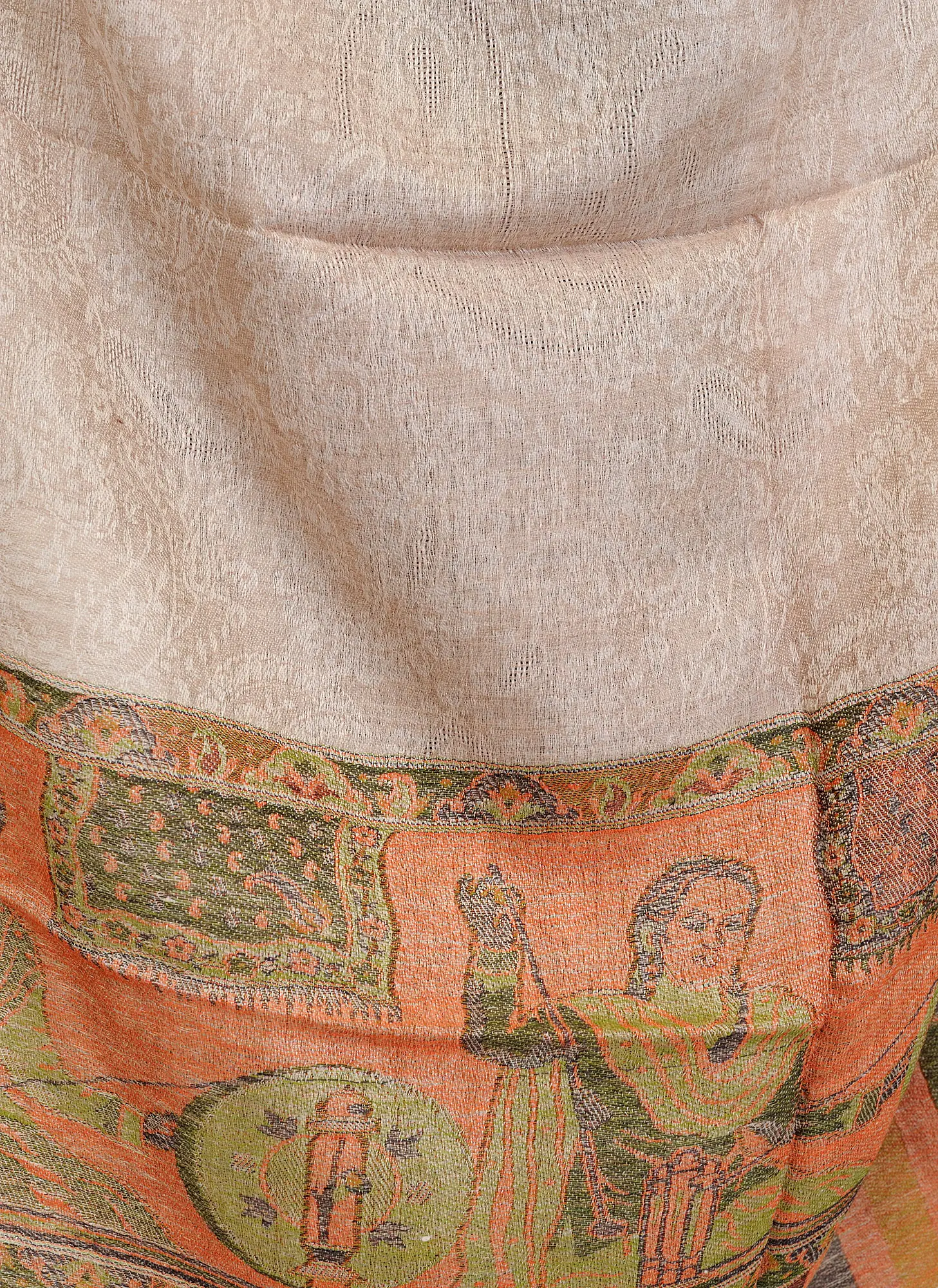 Moonlight Semi-Cashmere Kani Stole with Woven Paisleys and Self Weave