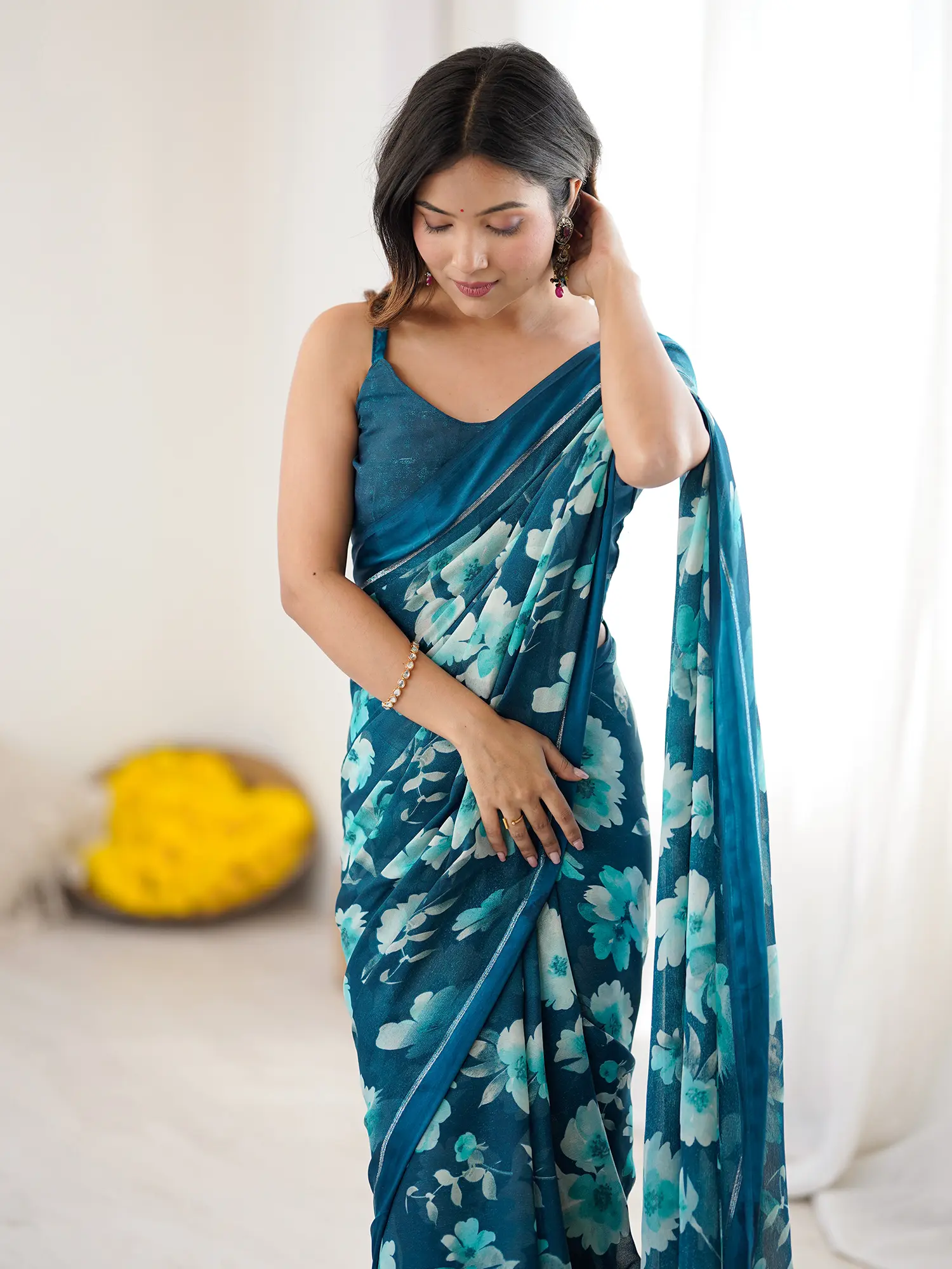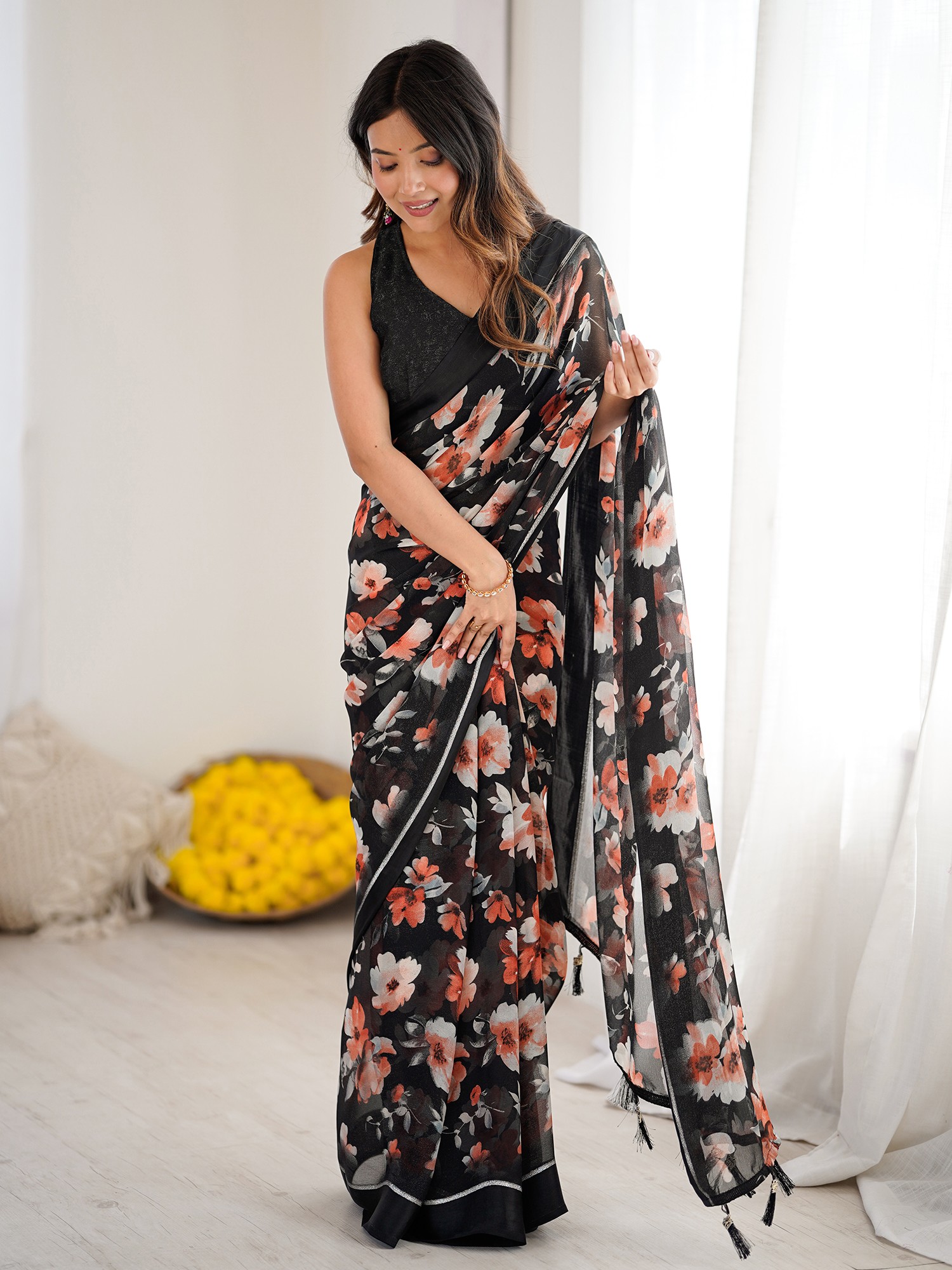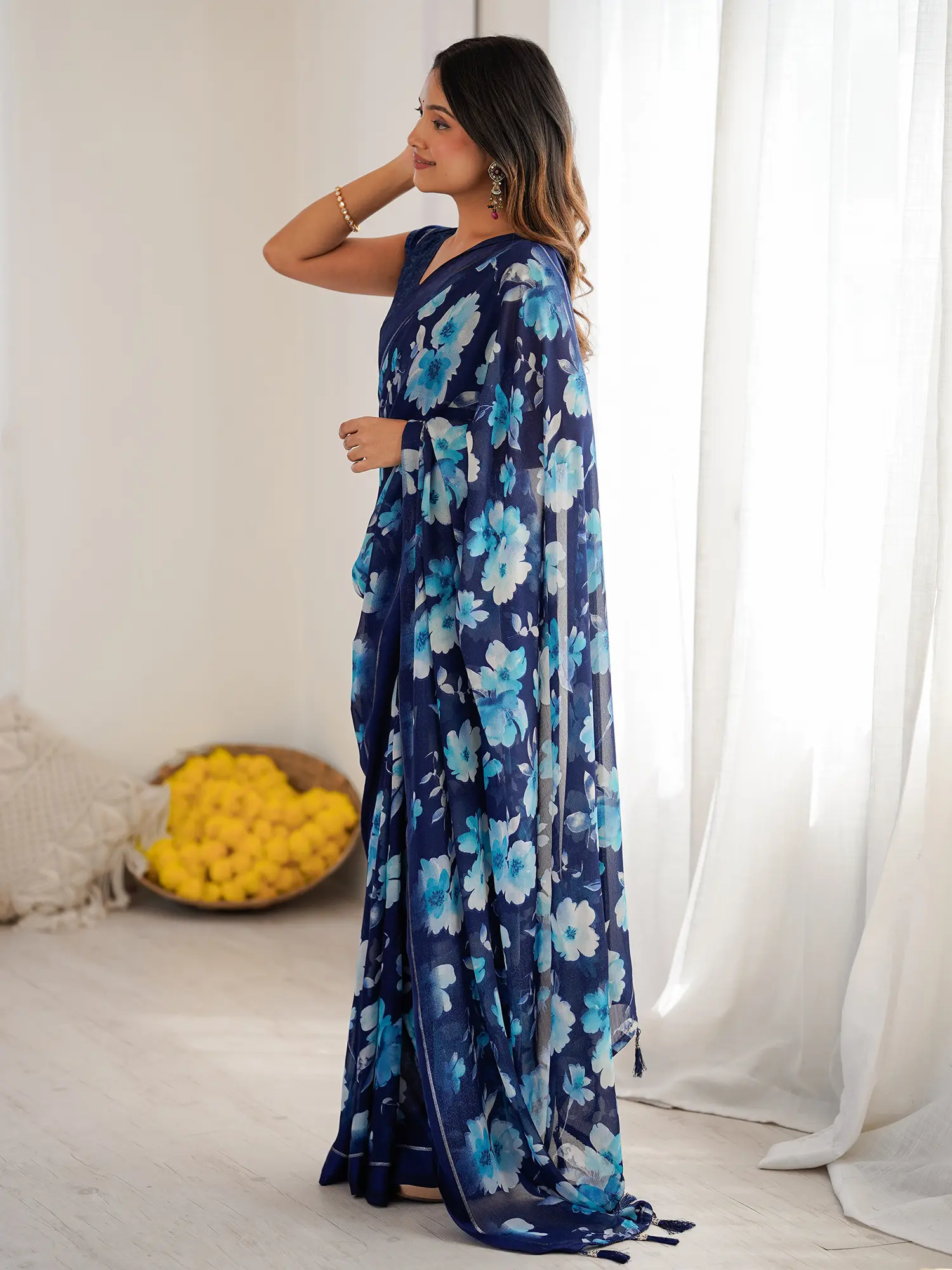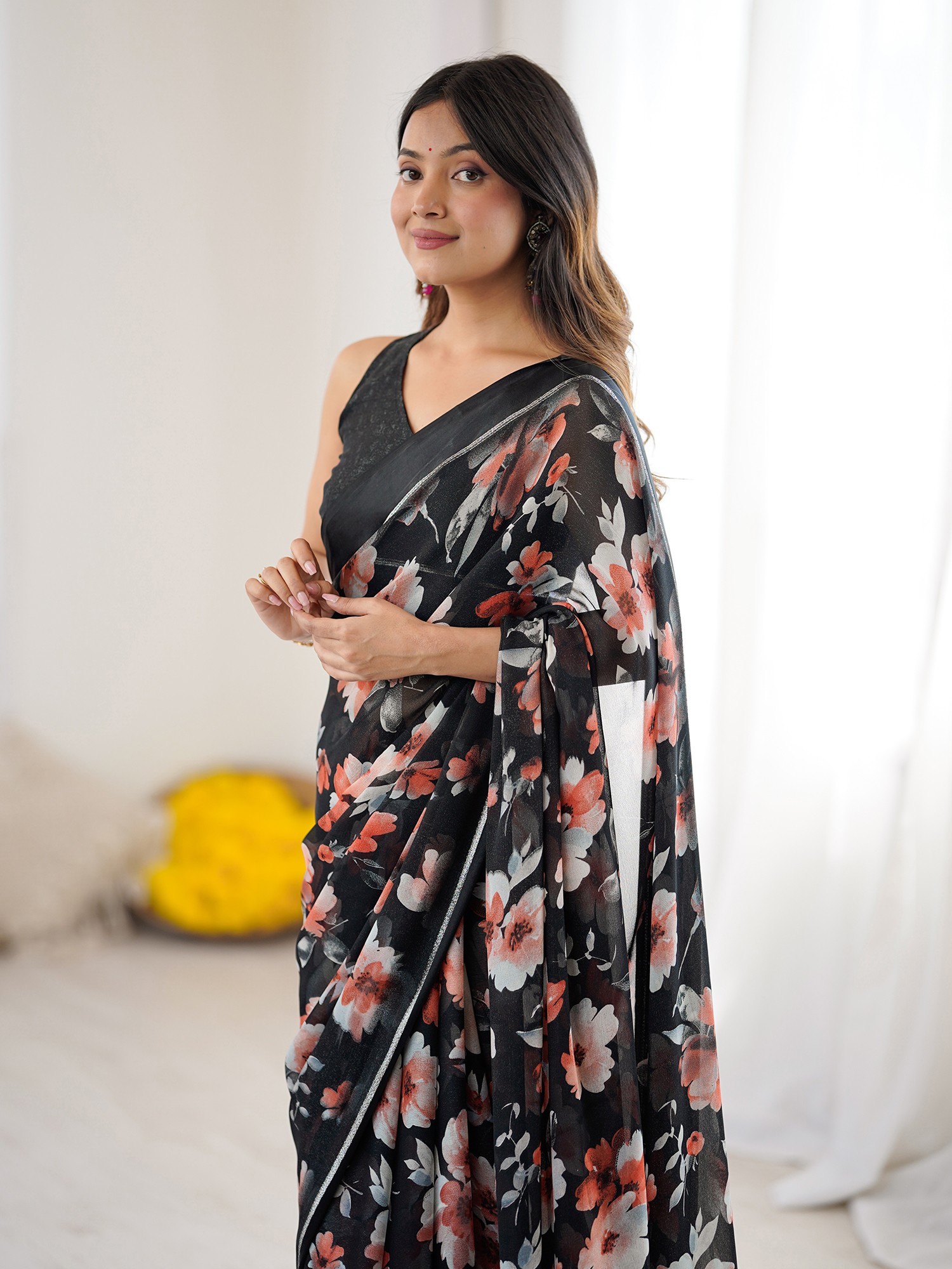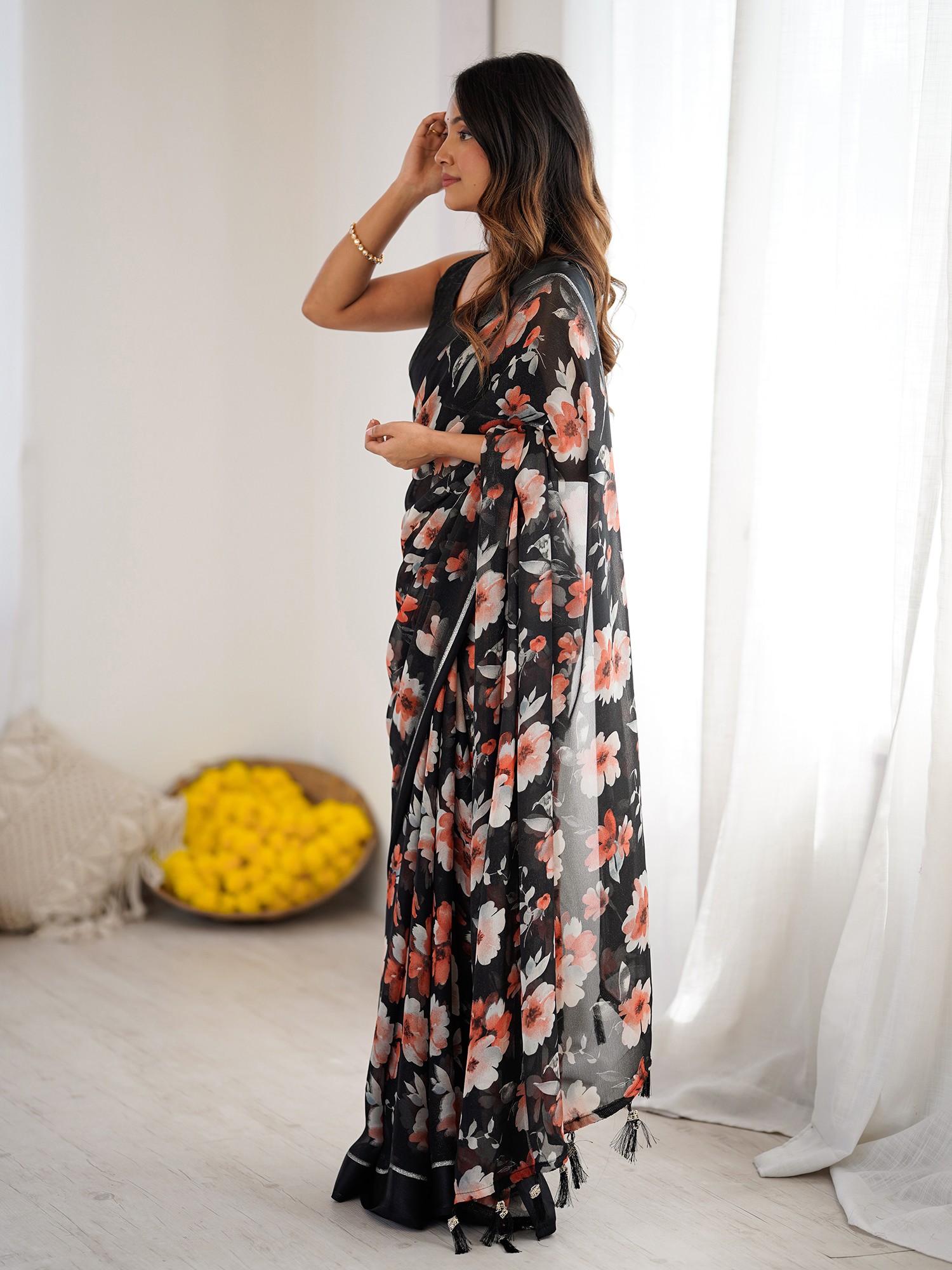 The saree, a garment steeped in centuries of cultural significance, is re-imagined here with a contemporary flair. It carries the legacy of Indian textiles, a tradition of elegance and storytelling woven into every thread, updated for the modern connoisseur. You’ll feel connected to this heritage as you wear it.