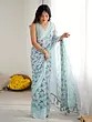 The gentle watercolor-inspired floral print, rendered in a palette of soft blues and delicate purples, evokes a sense of serene beauty. This captivating motif is interspersed across the luminous Moss Satin Patta, creating a visually stunning effect. The fabric itself feels sumptuously smooth against your skin, promising unparalleled comfort and a graceful silhouette.