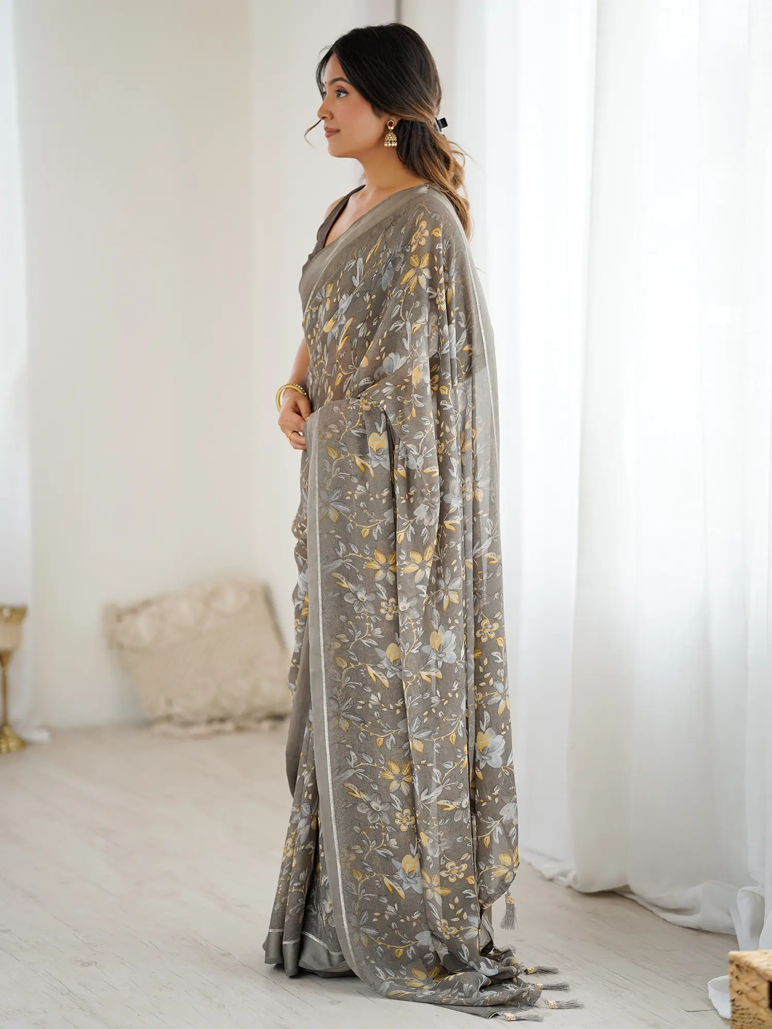 Moss Satin Patta Saree With Woven Patta Designer Printed Work Offers An Elegant Drape Ideal For Party And Festival Wear