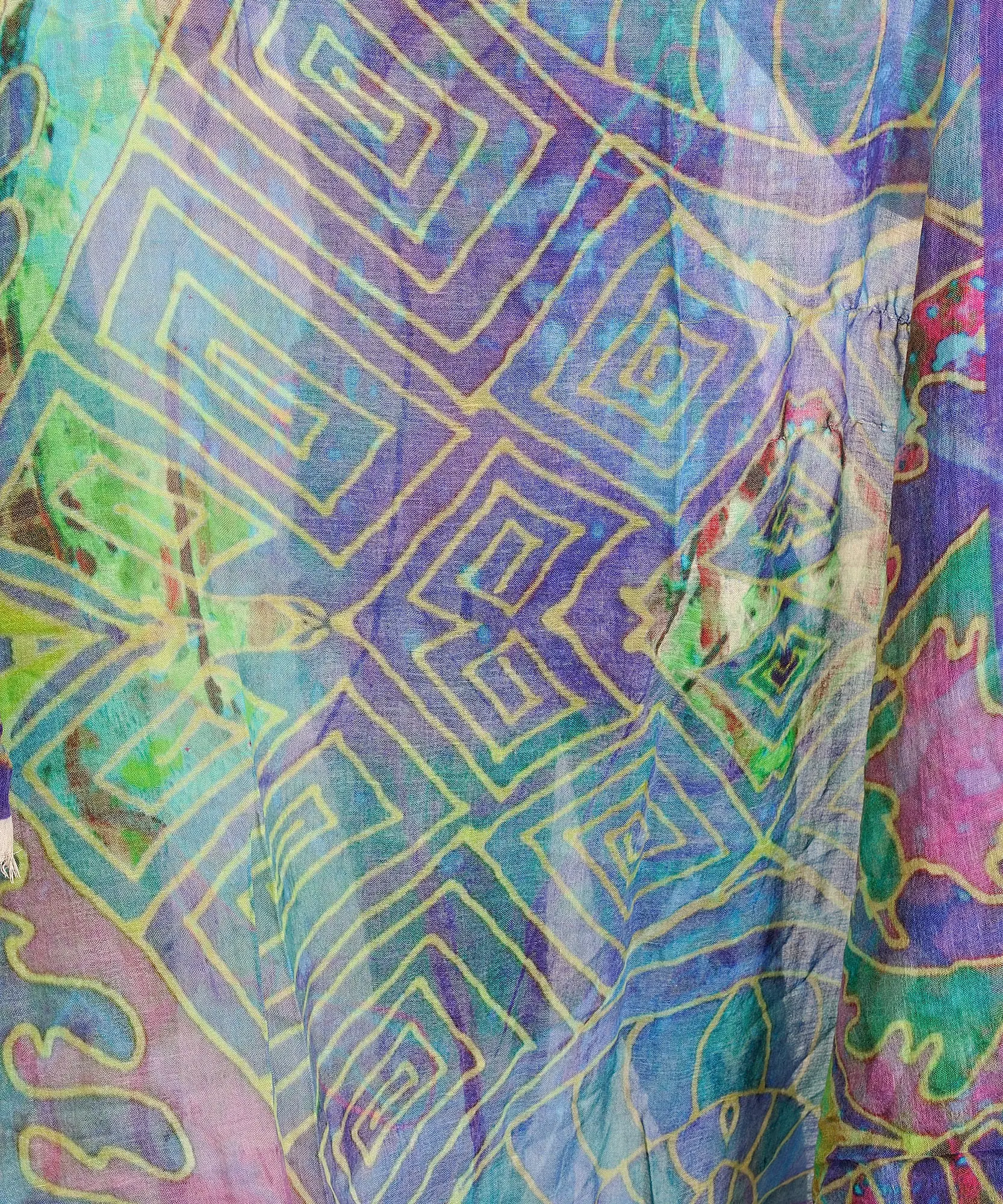 The digital printing technique ensures that the vibrant colors and intricate patterns are rendered with exceptional clarity and durability. The blend of pure cotton and silk provides a soft, breathable feel that is also remarkably resilient, maintaining its shape and color wash after wash. The raw, frayed edges add a touch of bohemian charm and artisanal appeal, further accentuating the unique character of this piece. This dupatta is more than just an accessory; it's a wearable piece of art designed to add personality and flair to any outfit. Discover the perfect fusion of comfort, style, and artistic expression with this stunning addition to your collection.