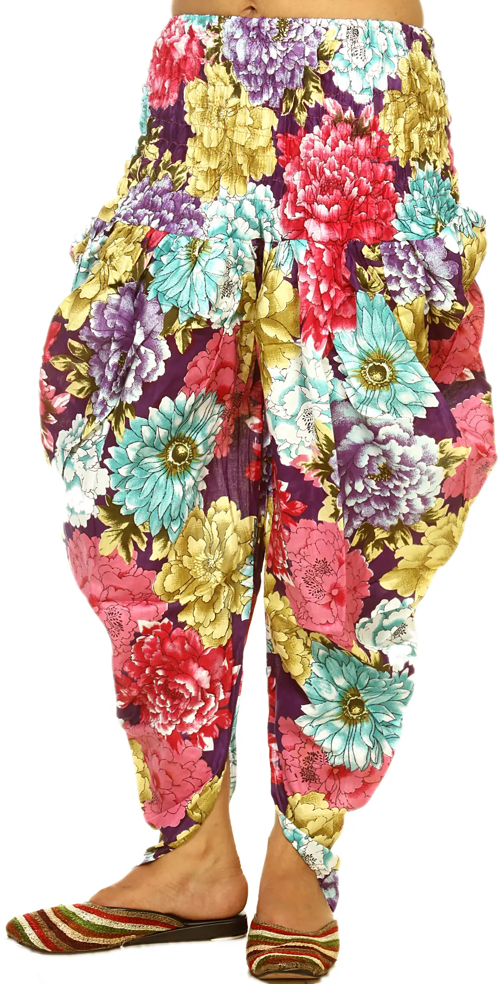 Multi-Color Harem Salwar Trousers with Large Printed Flowers