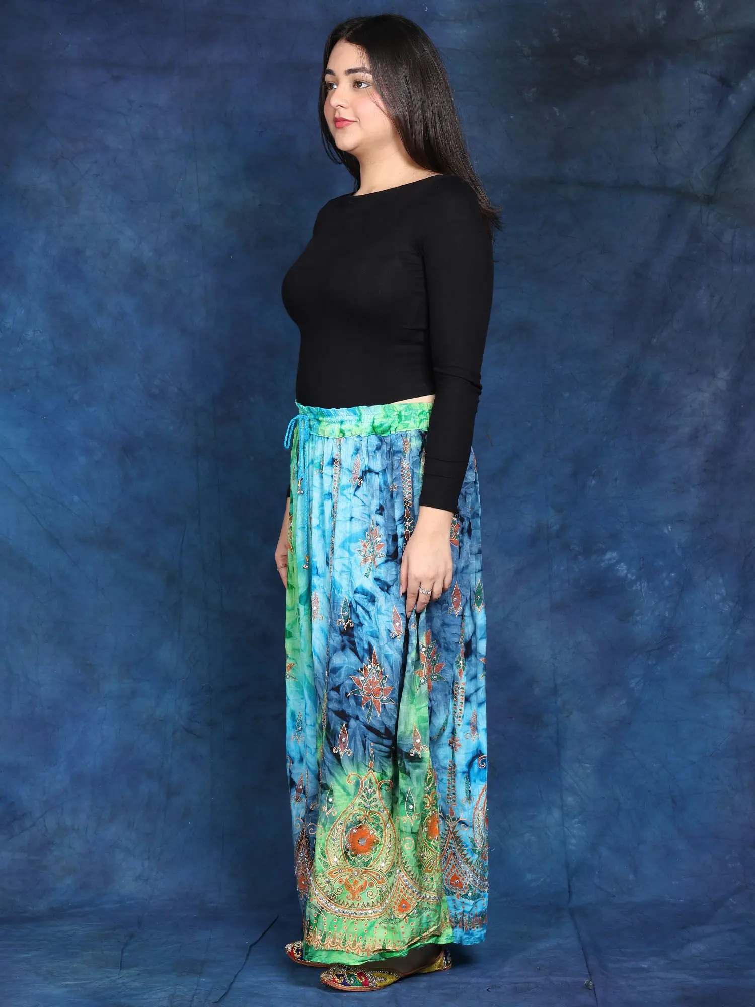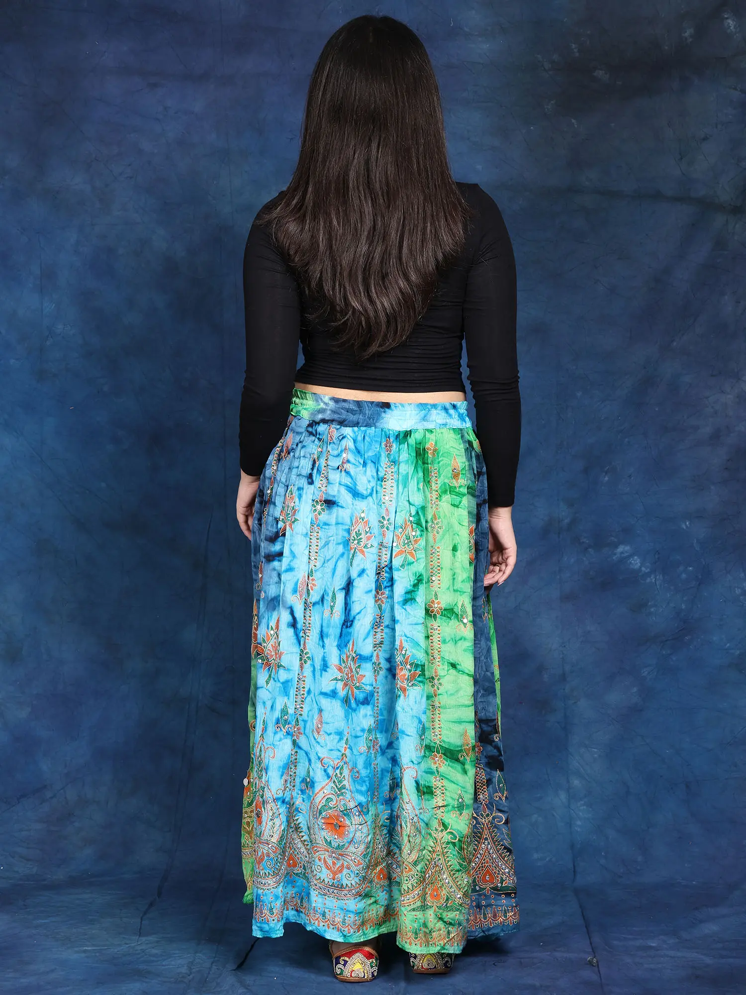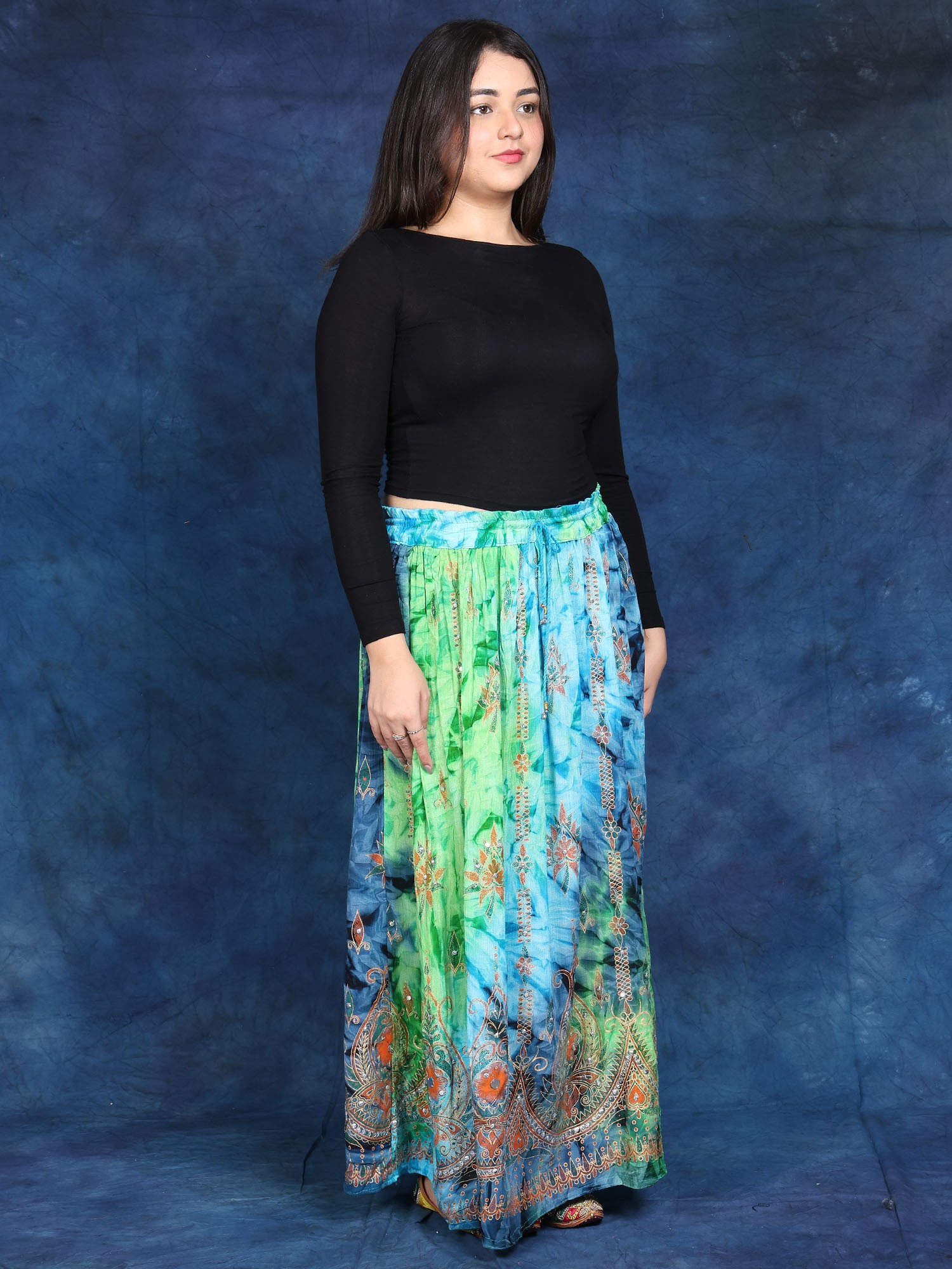 Adorn yourself in the elegance of a Multi-Color Long Skirt, an exquisite canvas adorned with enchanting paisley prints and delicate sequins. This skirt is a symphony of colors, each shade intertwining with the next to create a mesmerizing tapestry of beauty. The intricate paisley prints add a touch of traditional charm, while the subtle shimmer of sequins brings a hint of graceful opulence.