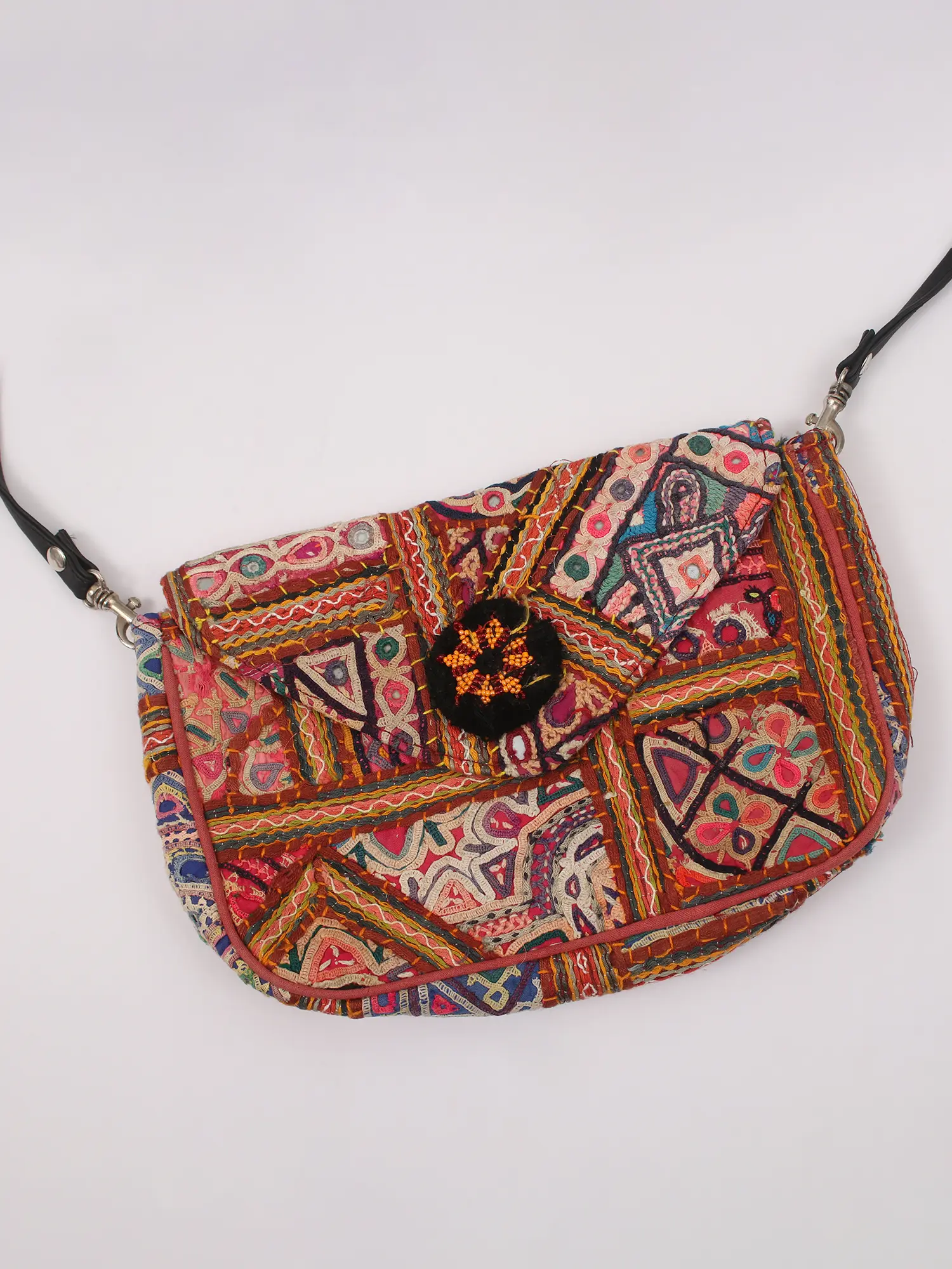 Multi-Color Side Shoulder Bag from Kutch with Antique Rabari Embroidery