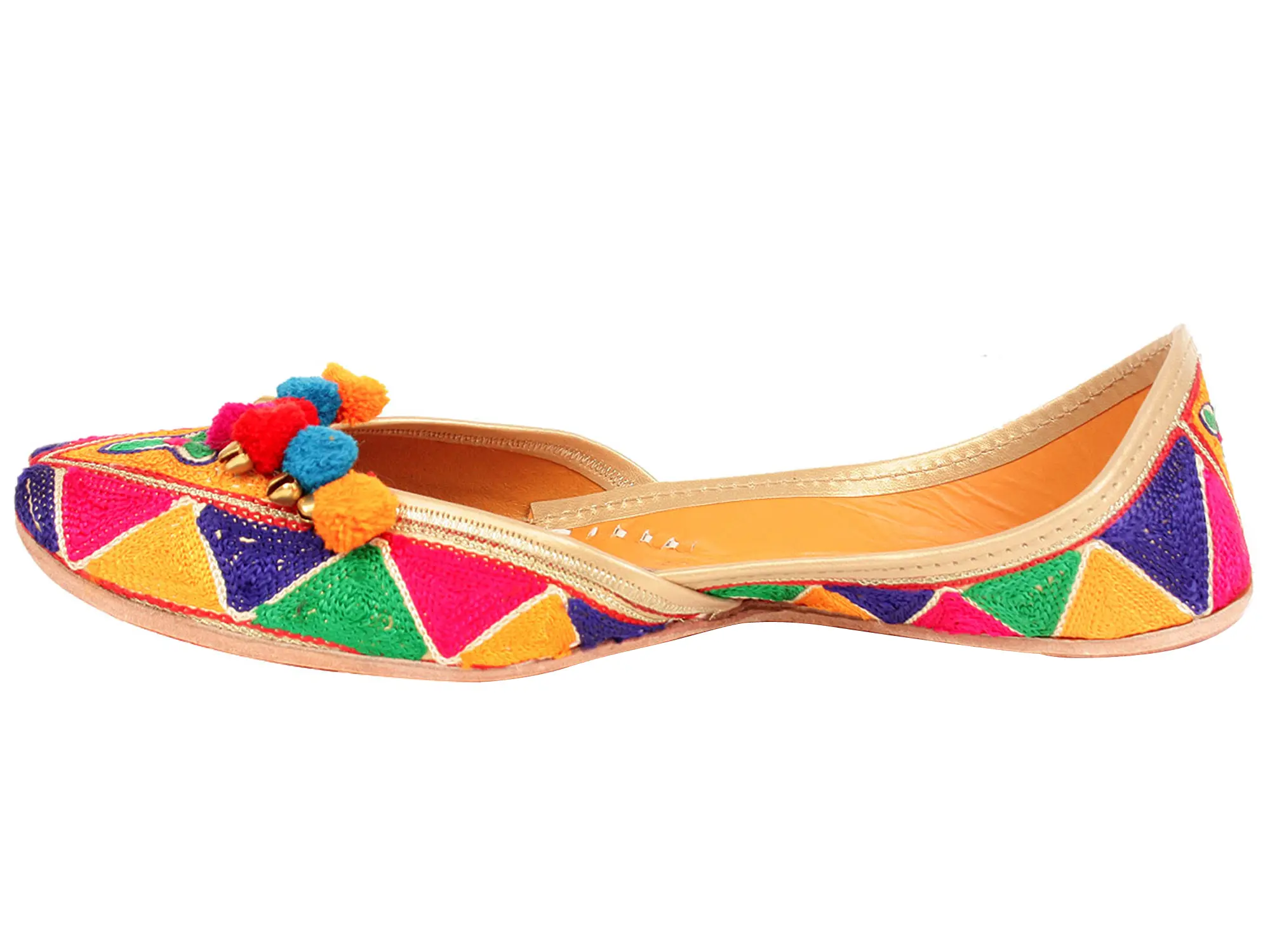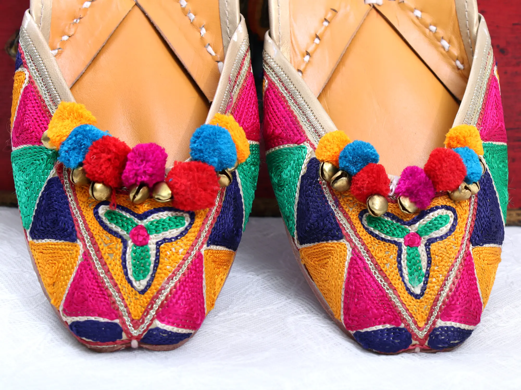With this “Multicolor Aari-Embroidered Jootis” embellished with enchanting ghungaroos, you may enter a realm of cultural splendor. Meticulously created from pure leather, these jootis transcend simple footwear, becoming a reflection of rich heritage and artistic finesse. The aari embroidery beautifully weaves stories of tradition, while the rhythmic jingle of ghungaroos echoes the spirit of celebration. Versatile and comfortable, these jootis simply boost your style or provide a dazzling touch to special occasions. With every stride, you carry a piece of handcrafted expertise, a flash of hues, and an homage to the rich tapestry of cultural diversity. Embrace the adventure, where each step is a dance and each pair tells a unique narrative.