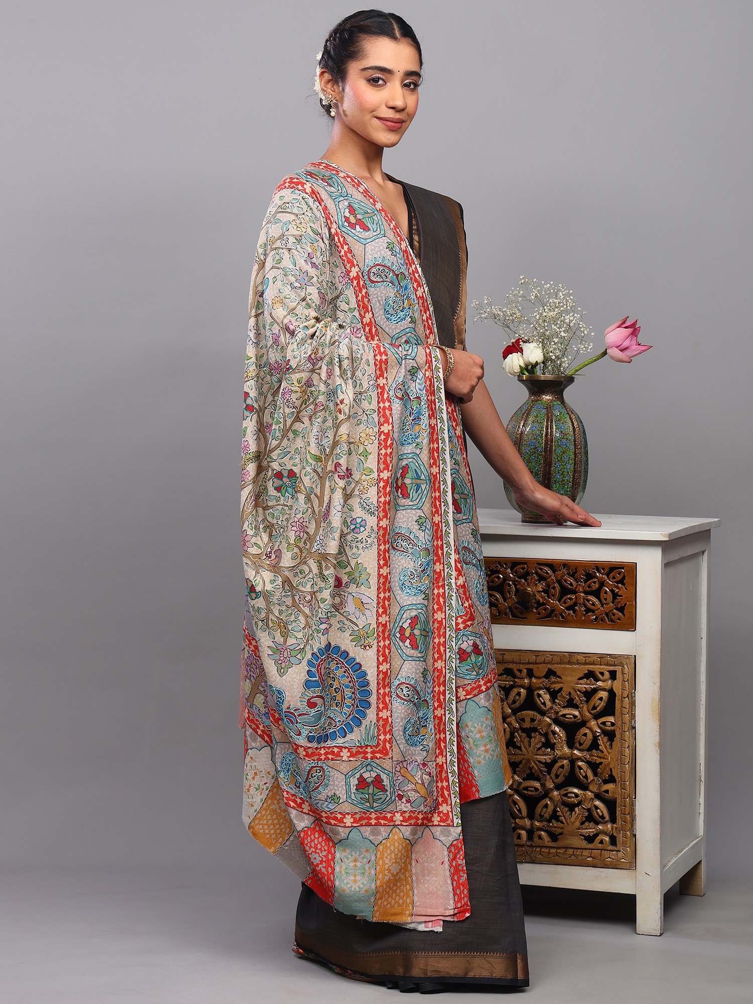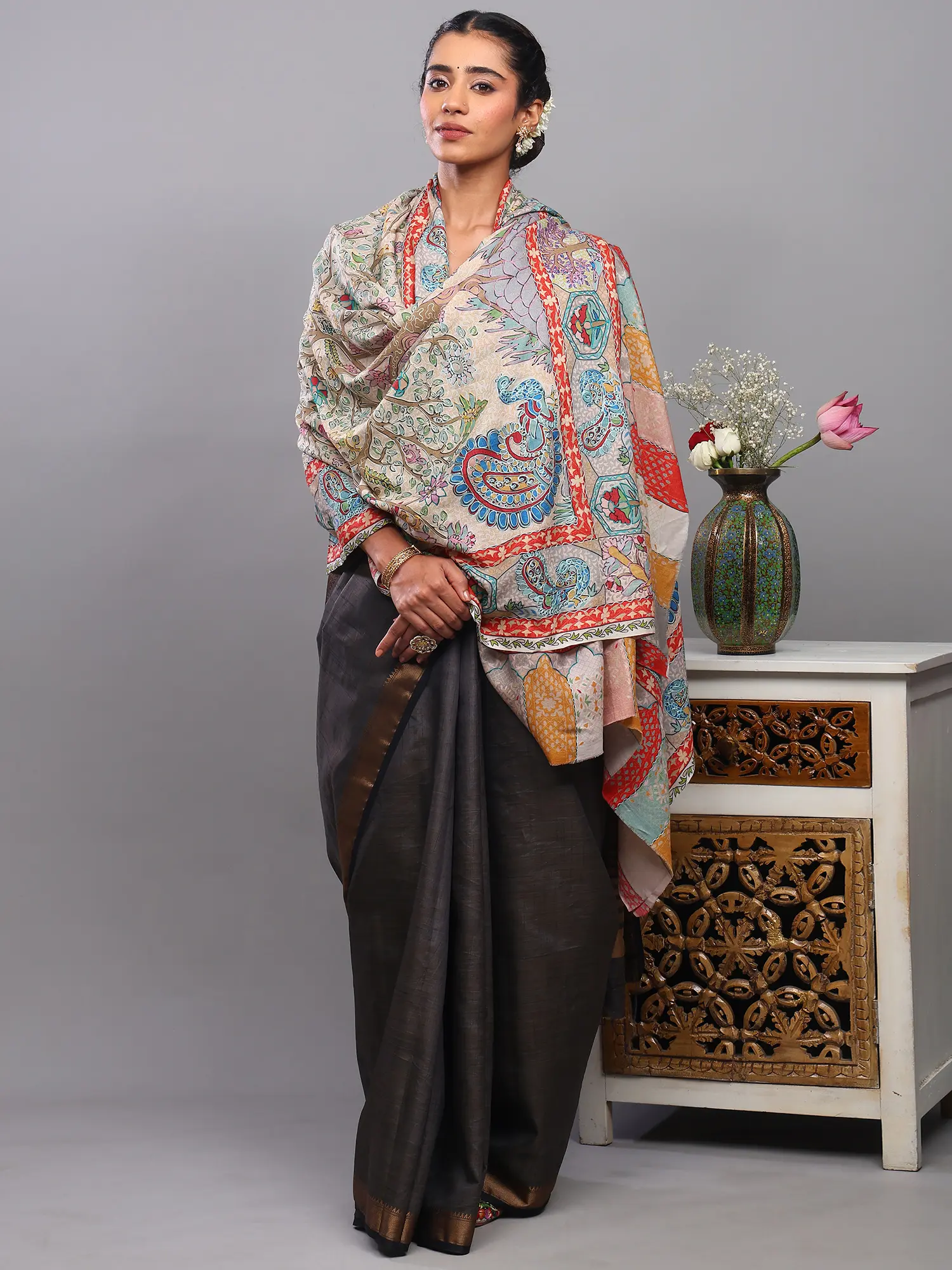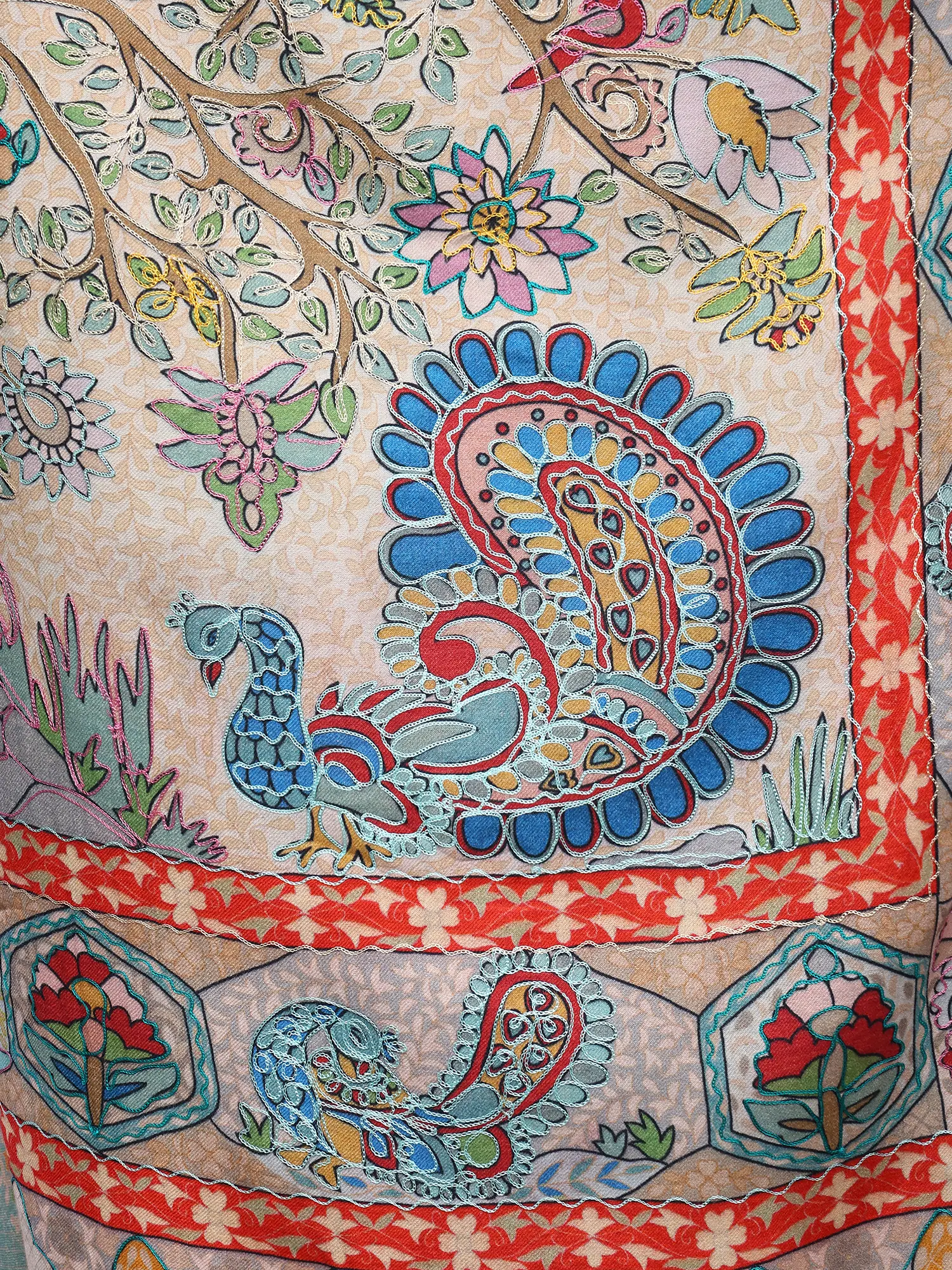 Dune-Brown Kani Pashmina Shawl From Kashmir with Kalamkari Hand Embroidery
