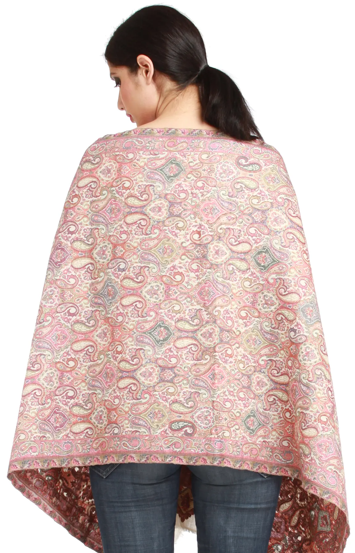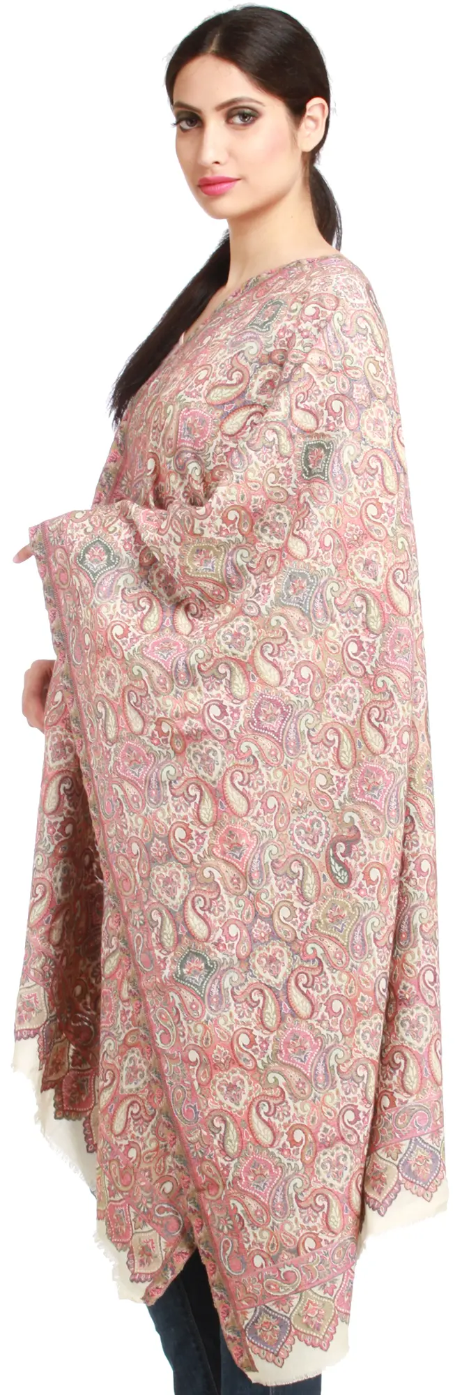 Jamawar Shawl with Woven Border and Paisleys All-Over
