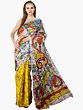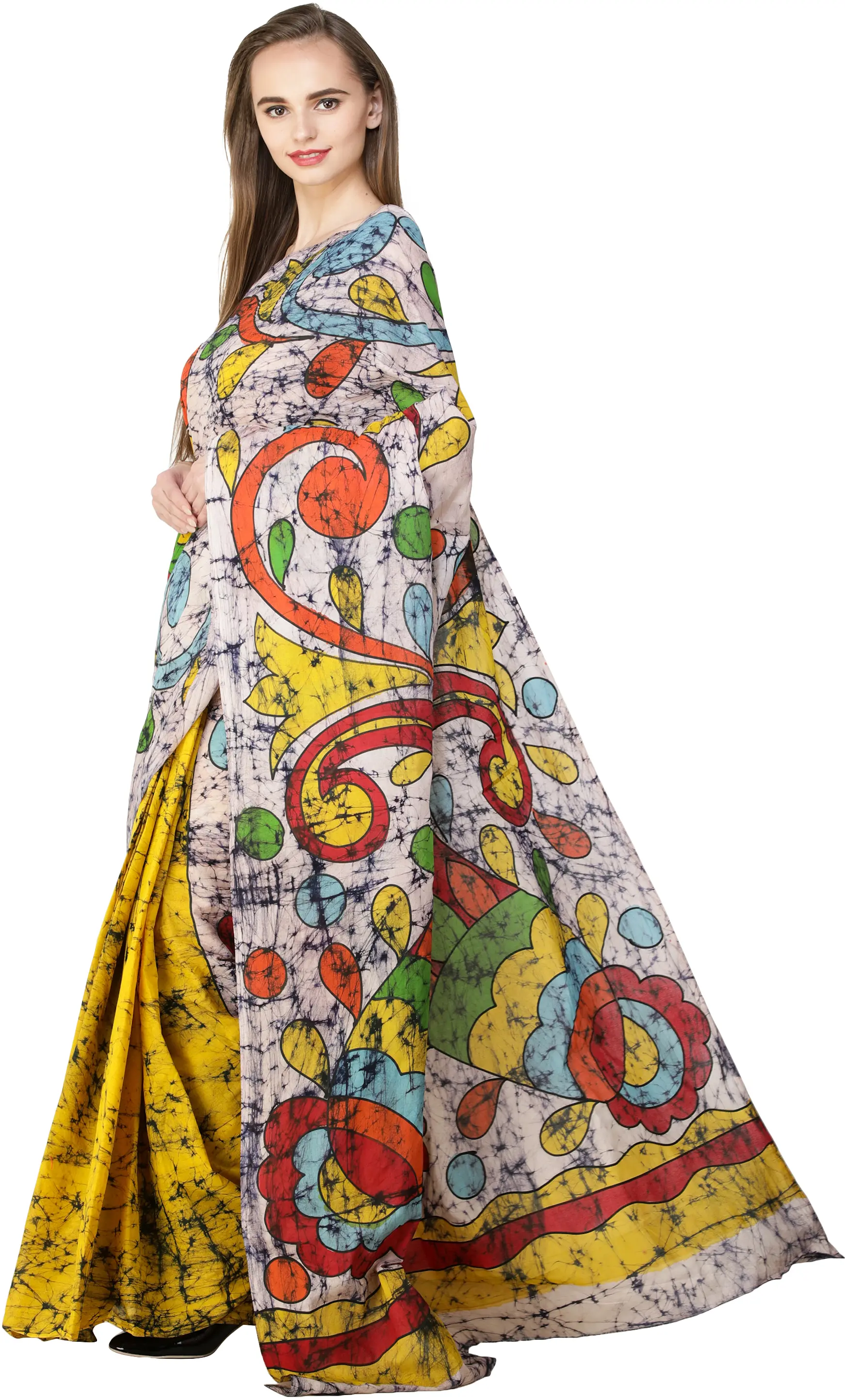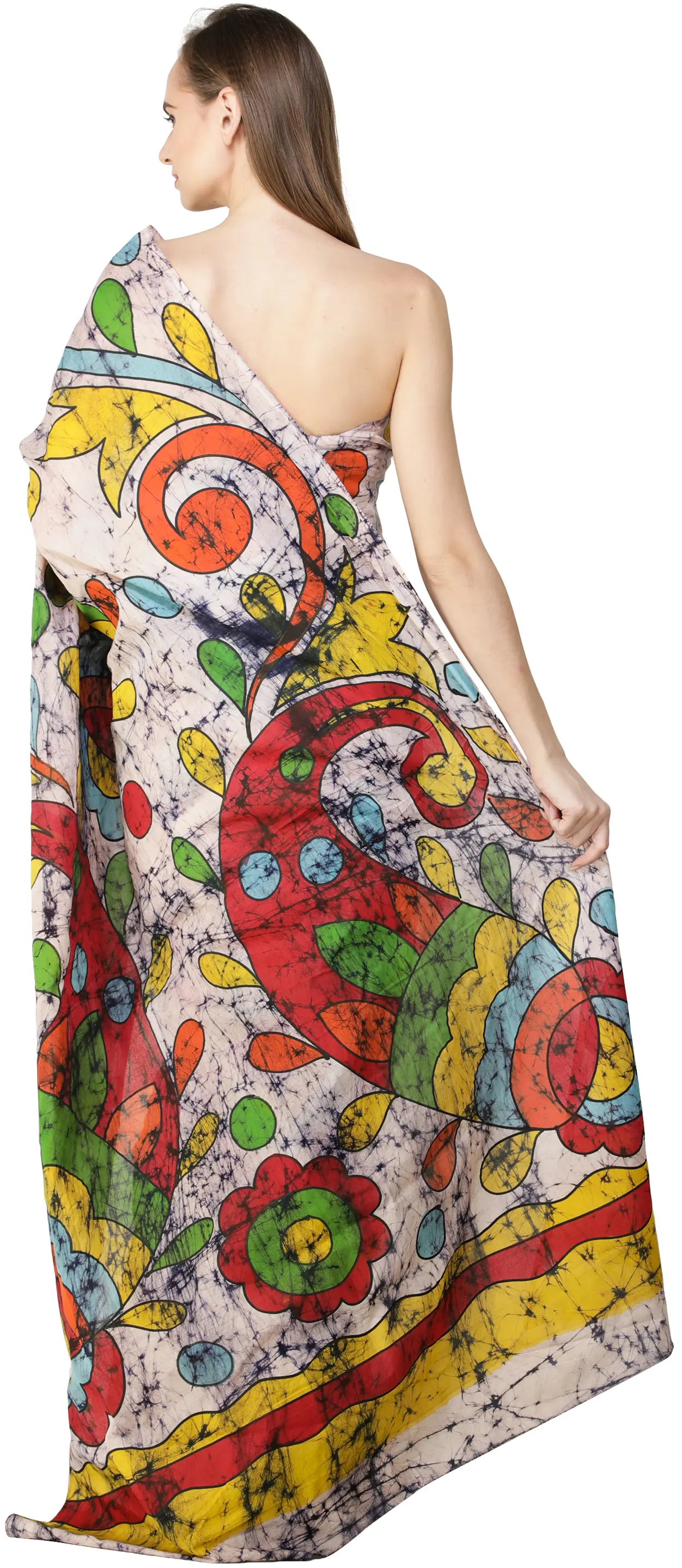 Multicolor Batik Sari from Madhya Pradesh with Printed Paisleys and Florals