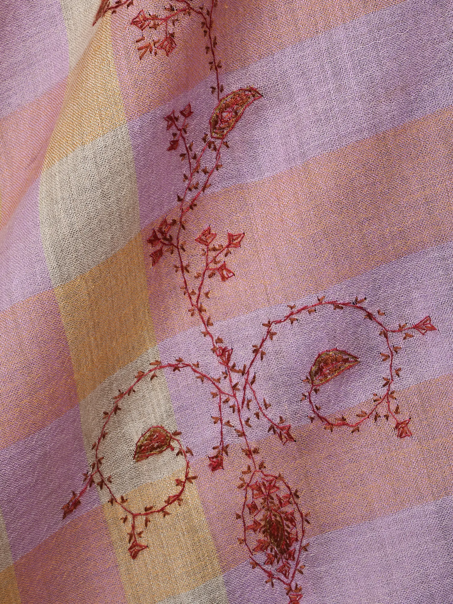 Multicolor Floral Motif Kalamkari Shawl with Chain Stitch Embroidery