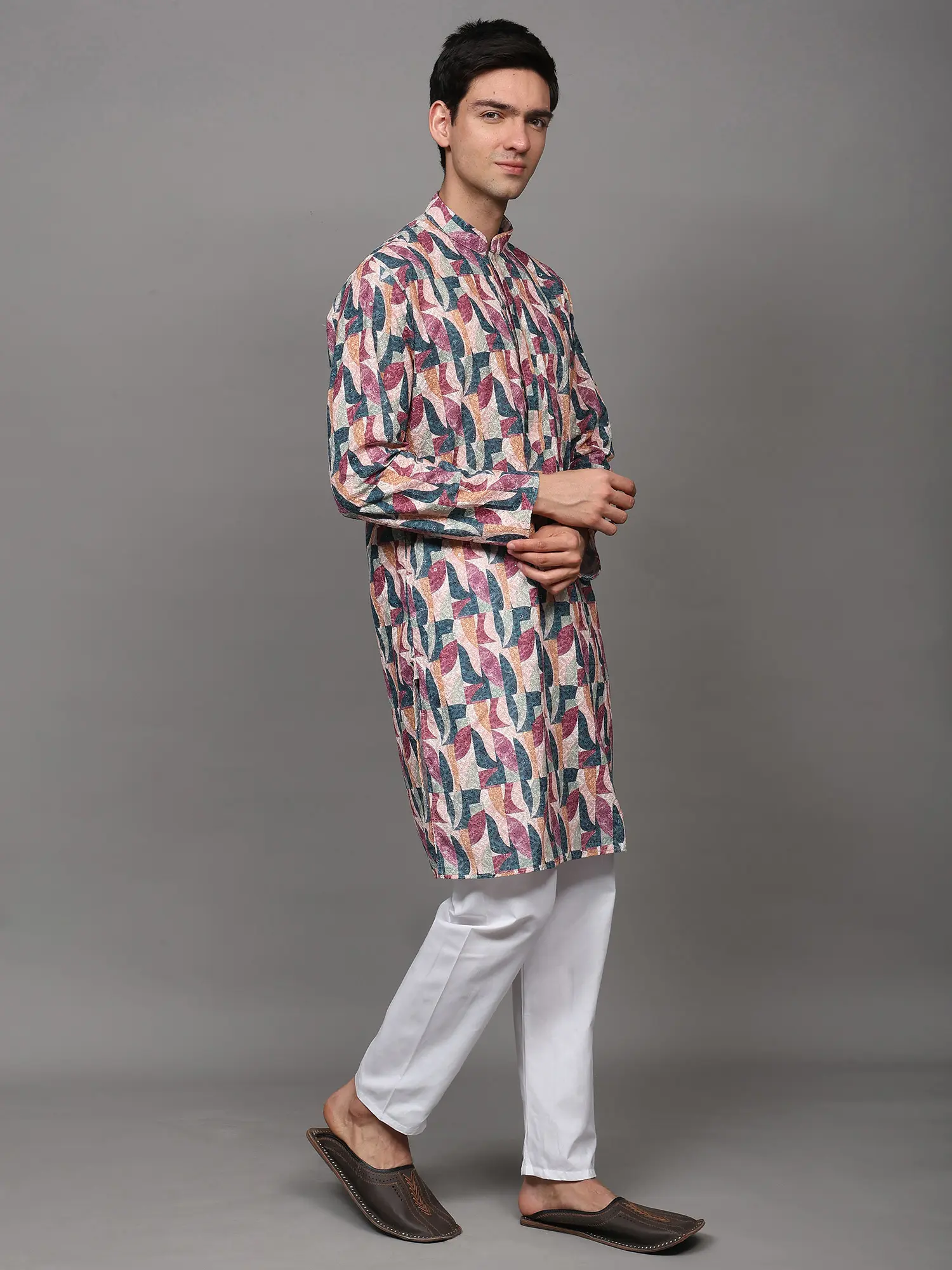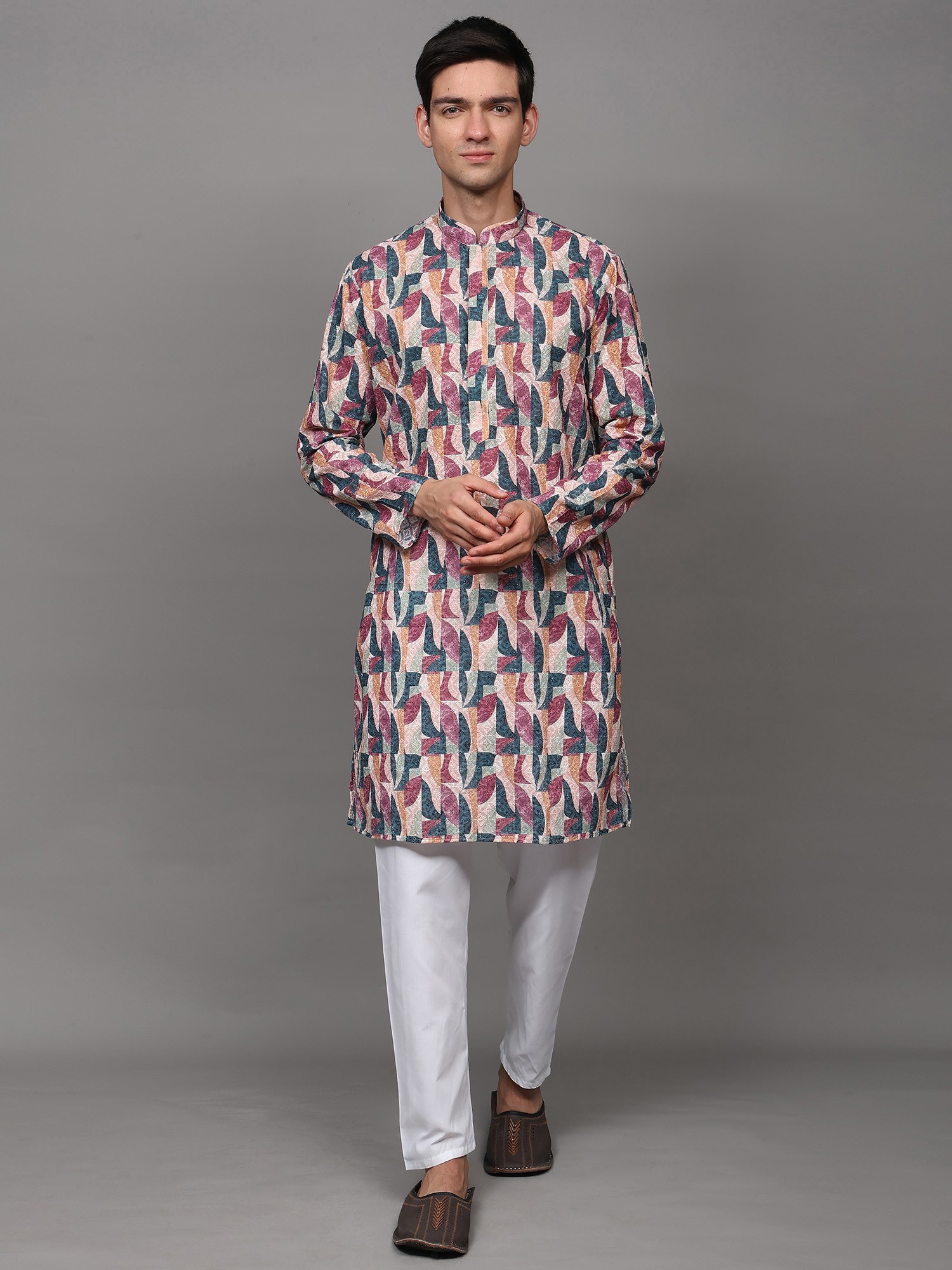Pastel Kurta Pajama Set with Chikankari Embroidery All-Over