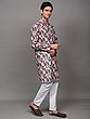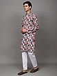 Monochrome Paisley Floral Chikankari Coral Color Sequin Work Kurta With White Pajama Set