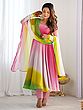 Leaves Pattern Faux Georgette Anarkali Suit For Bridal With Attractive Border And Dupatta