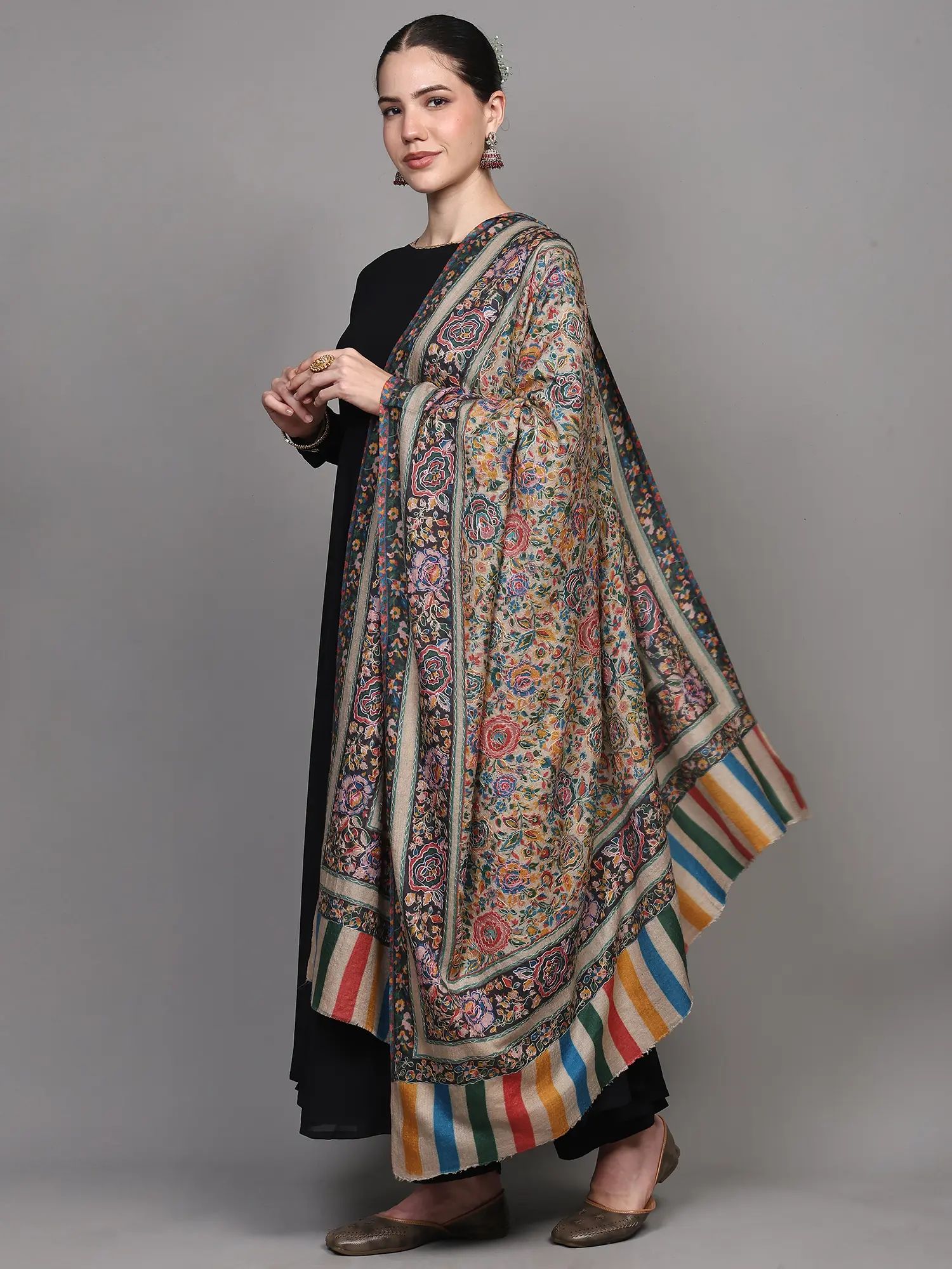 Multicolor Kalamkari Embroidered Shawl with Giant Paisley Motifs