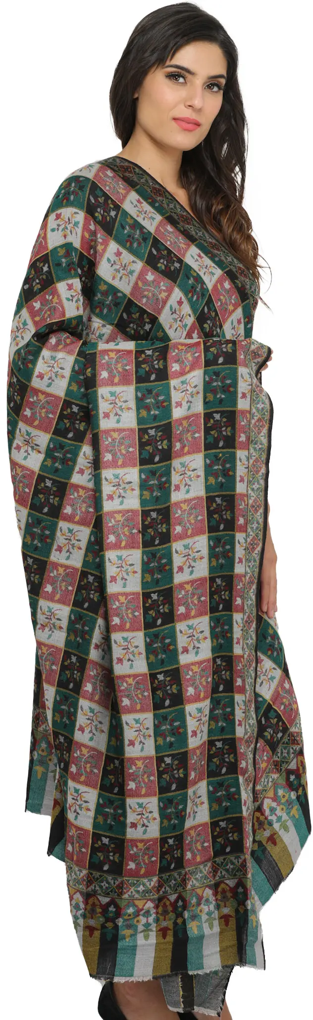 Pure Wool Kani Jamawar Shawl from Amritsar with Embroidered Flowers and Paisleys