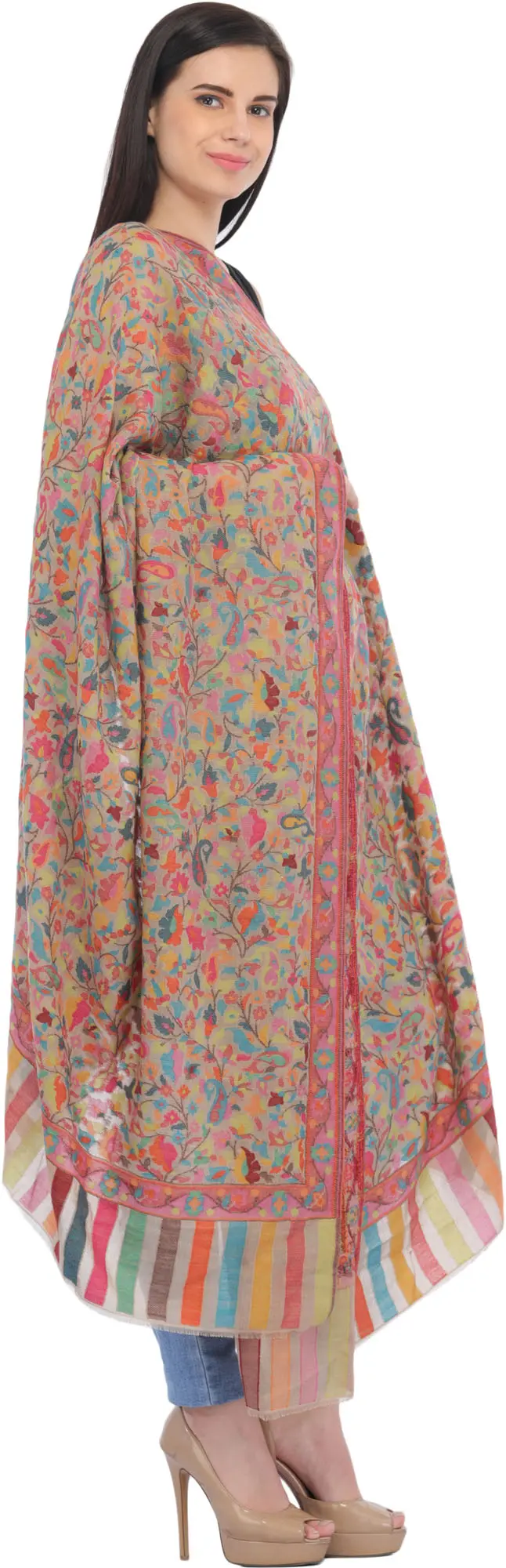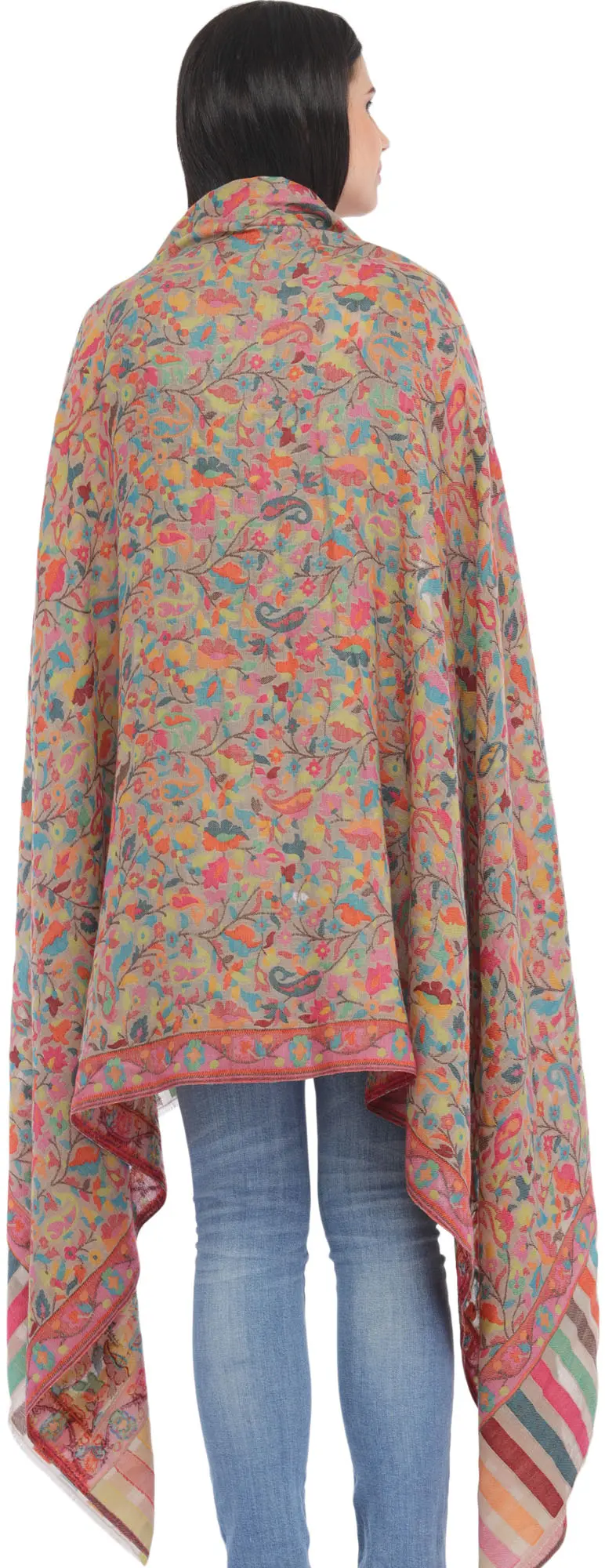 Pure Wool Kani Jamawar Shawl with Embroidered Flowers and Paisleys