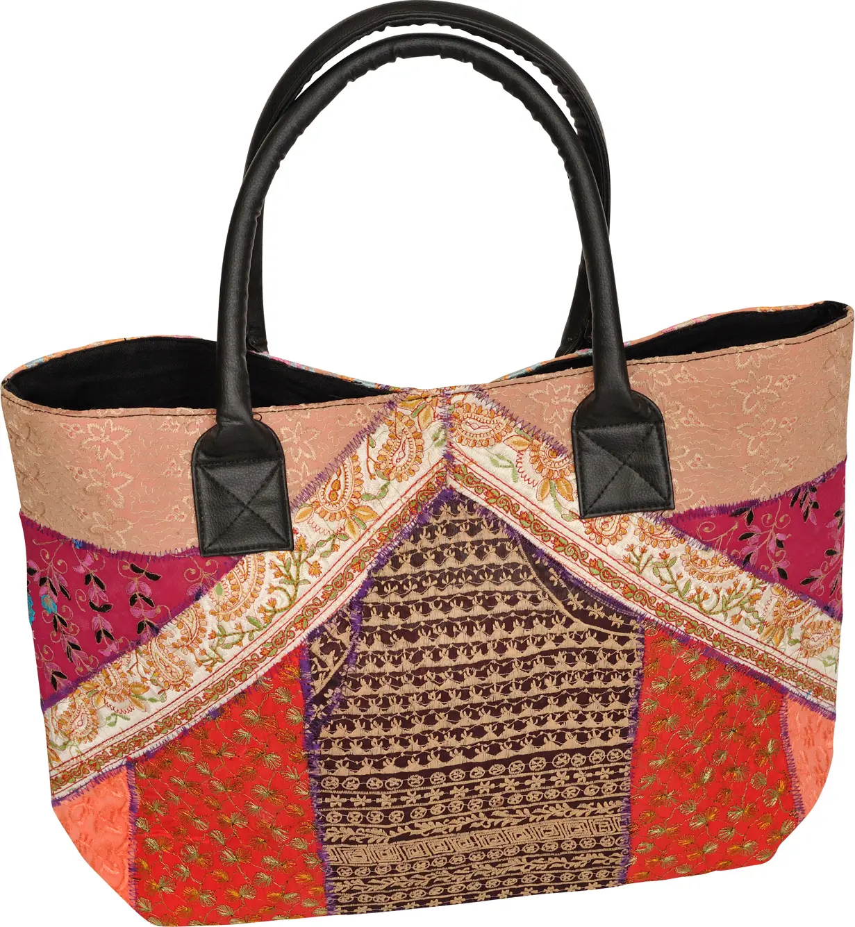 Multicolor Floral-Embroidered Large Shopper Bag from Kutch with Patchwork