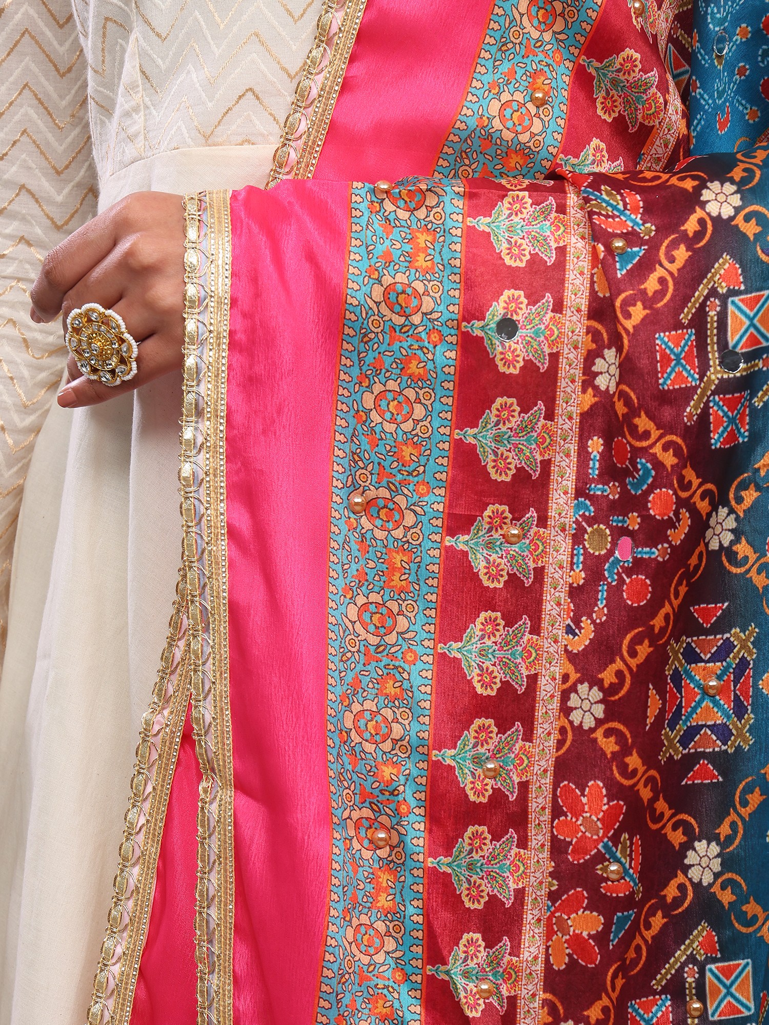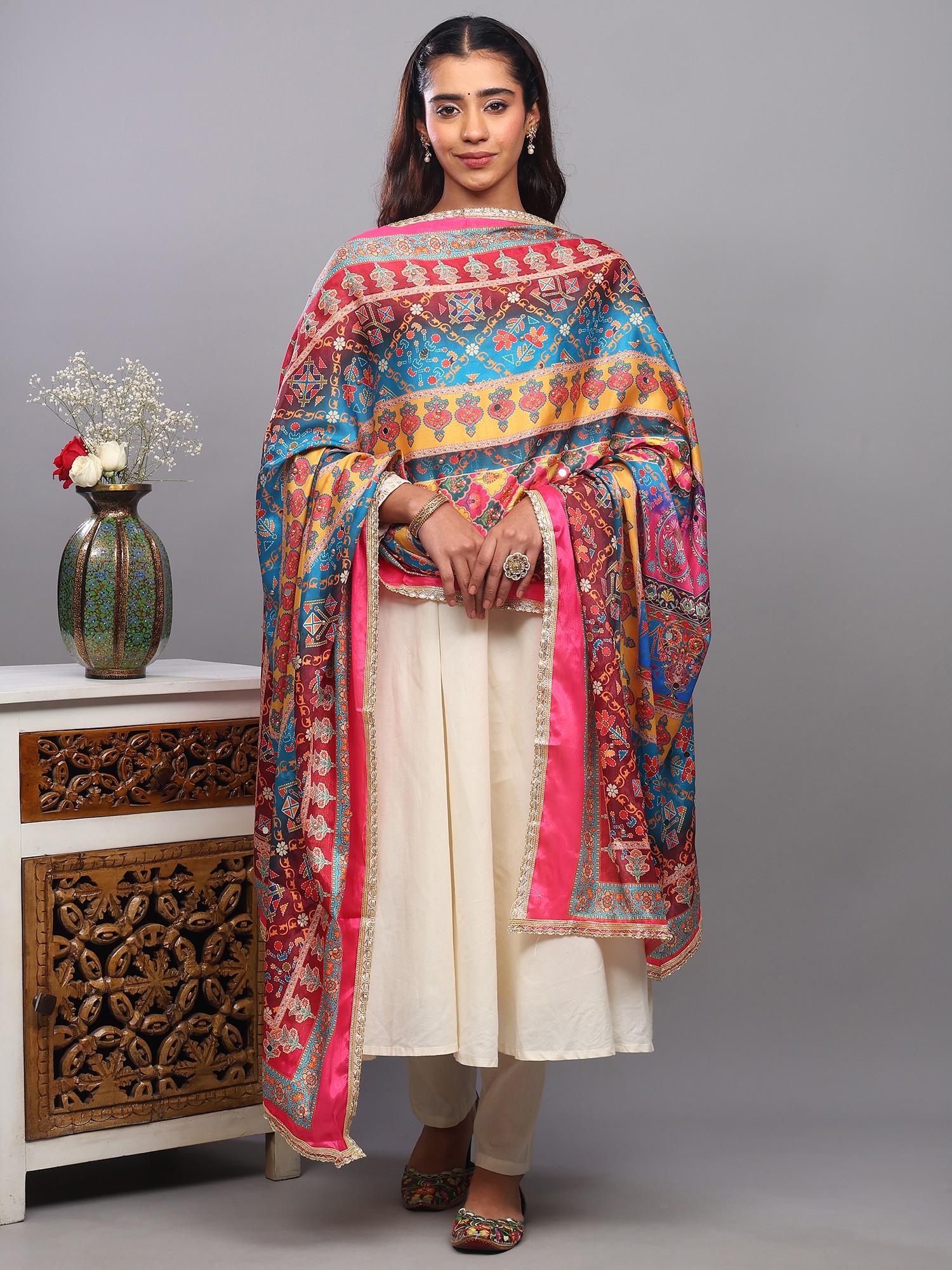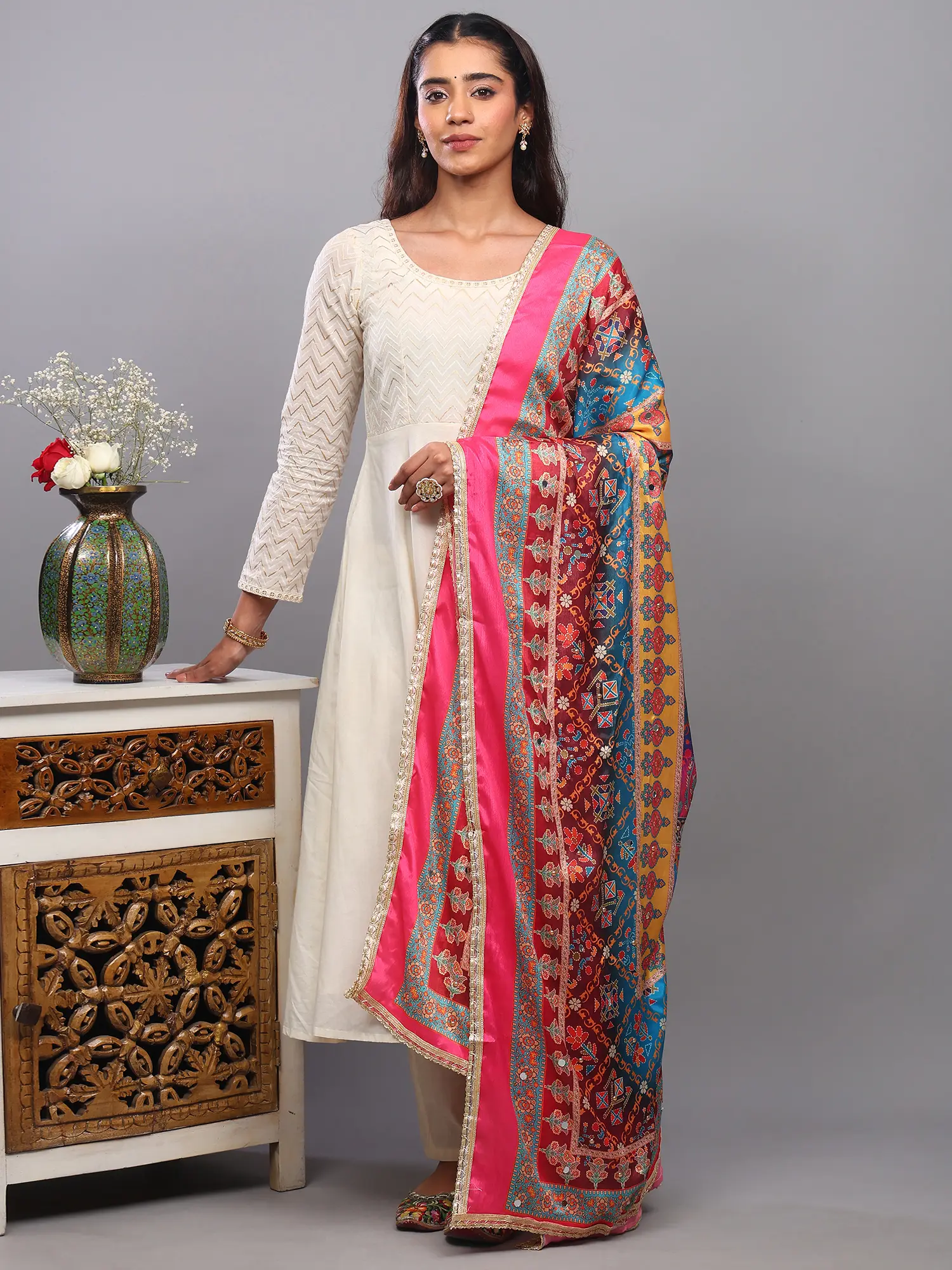 Velvet Multicolor Patch Work Sequins Embroidered Dupatta with Scalloped Border