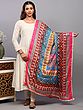 Fiesta-Red Phulkari Dupatta from Punjab with Multicolor Floral Patterns and Zari Border