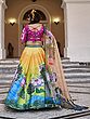 Multicolor Muslin Silk Printed Flared Party Wear Designer Lehenga Choli With Tassels