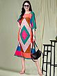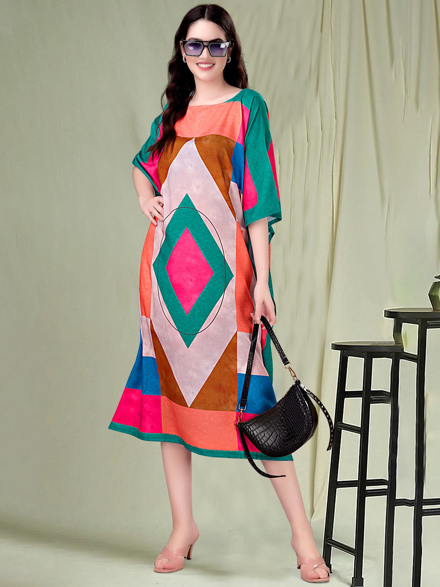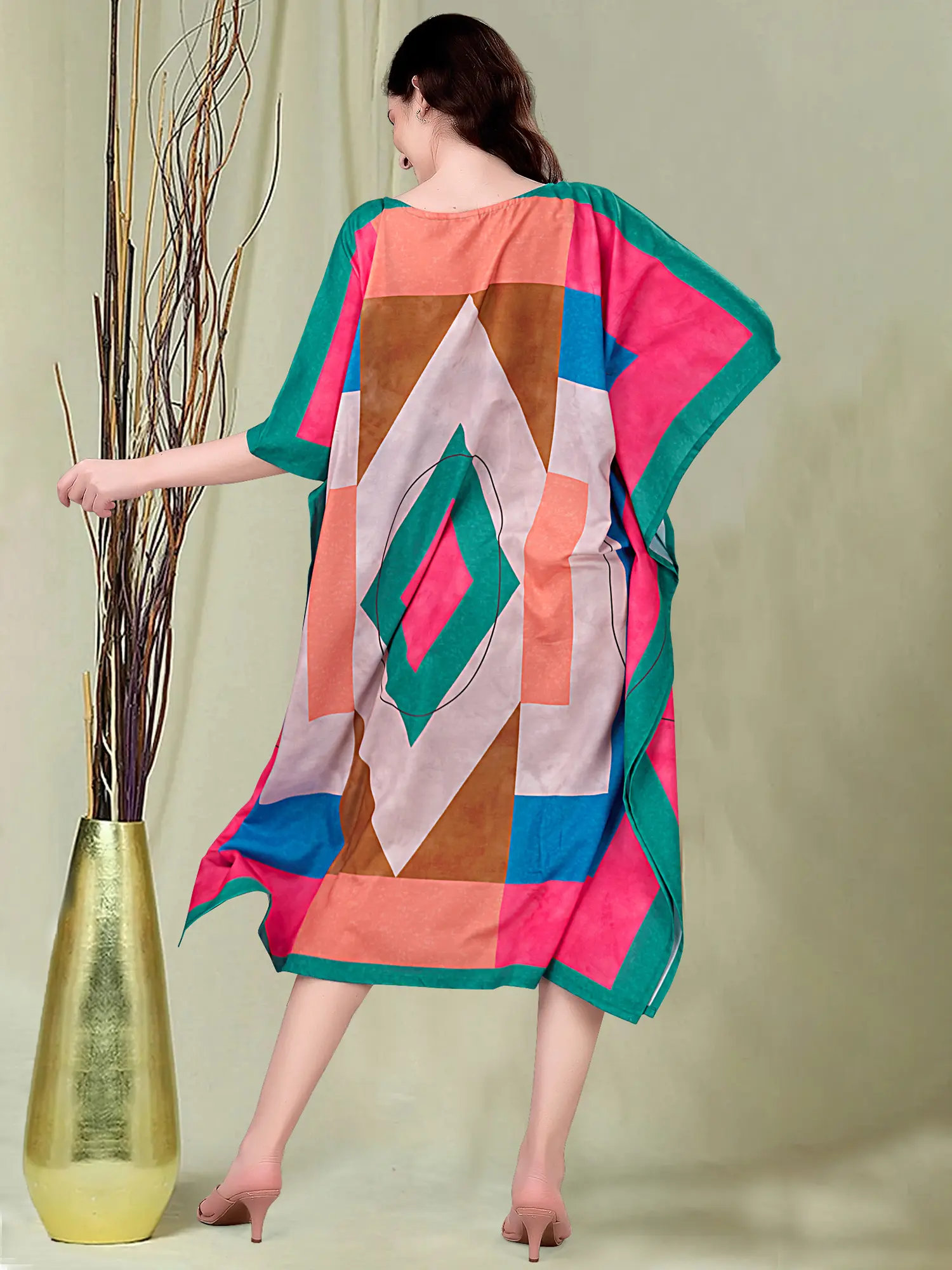 Black-Onyx Rayon Midi Kaftan with Printed Rectangle Shapes