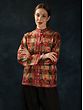 Ruby and Beige Digital-Printed Stole with Missing Checks in Weave