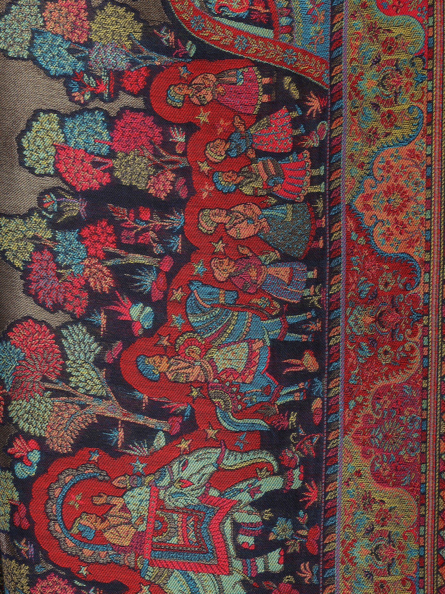 Kani Shawl from Amritsar with Woven Procession of King and Birds on Tree Branch