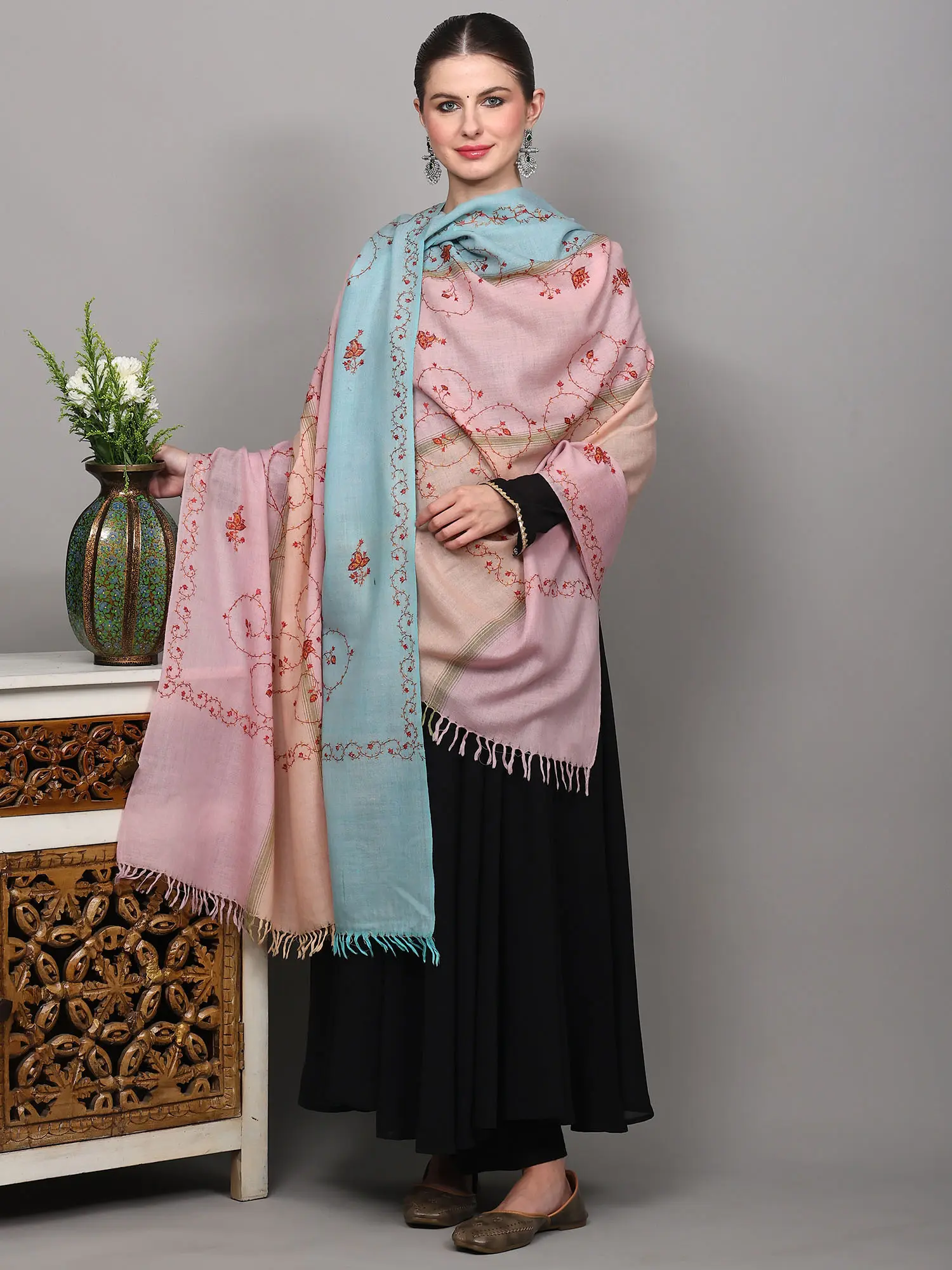 Pure Wool Shawl from Kashmir with Sozni Hand-Embroidered Giant Paisleys