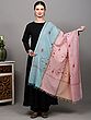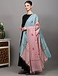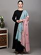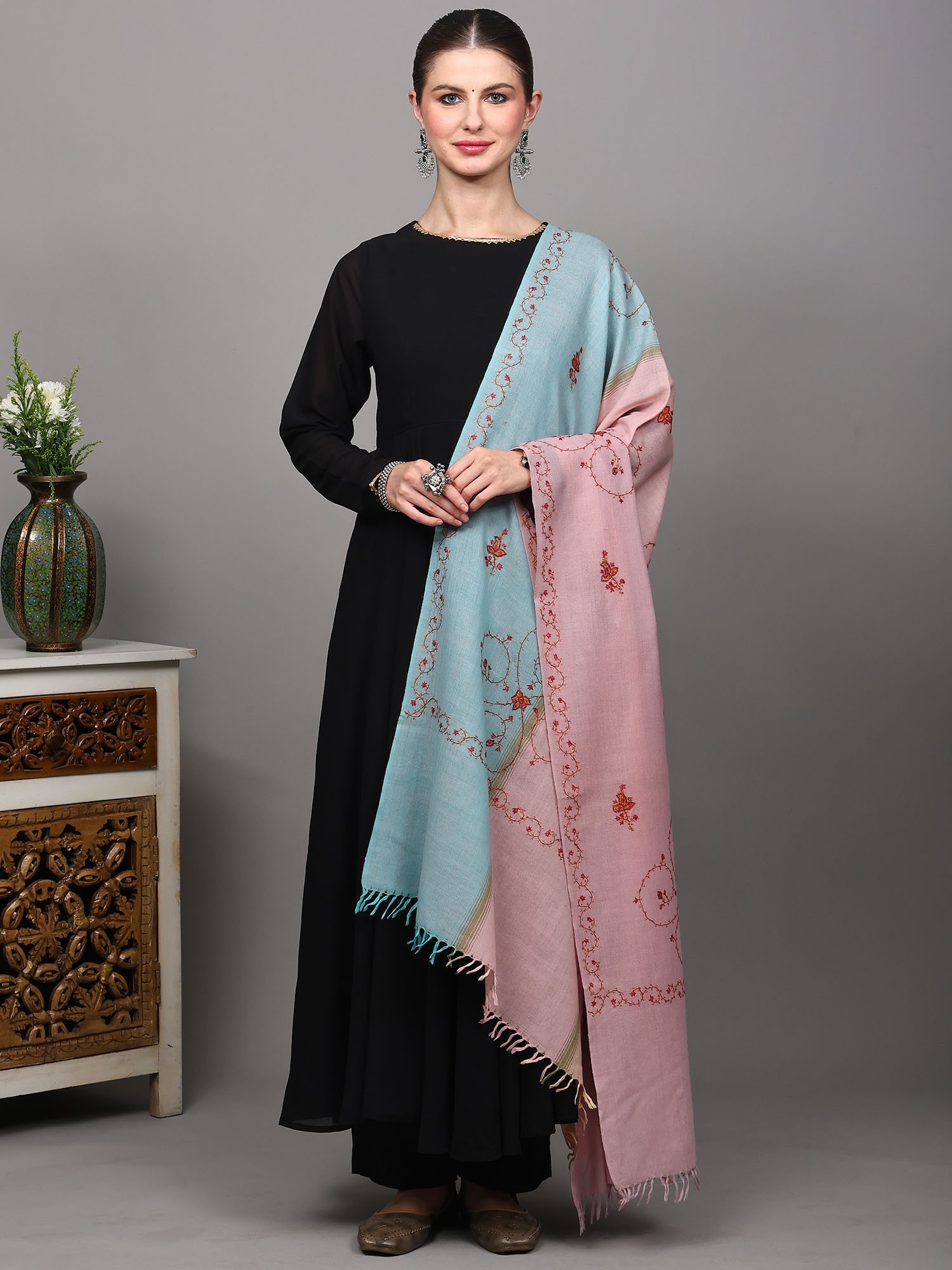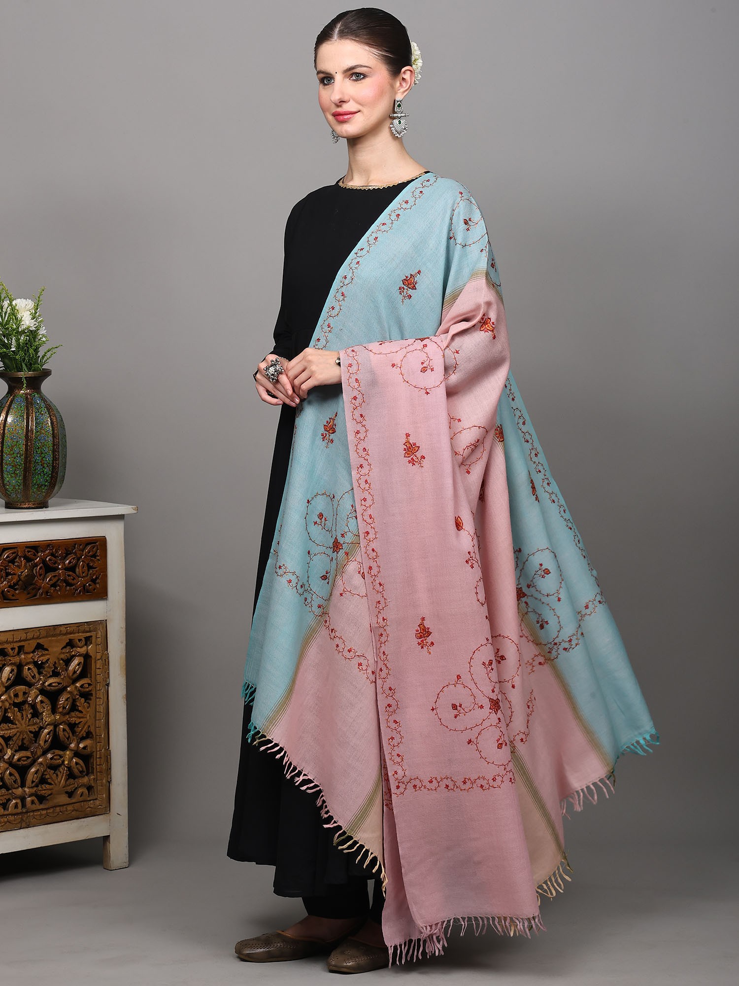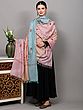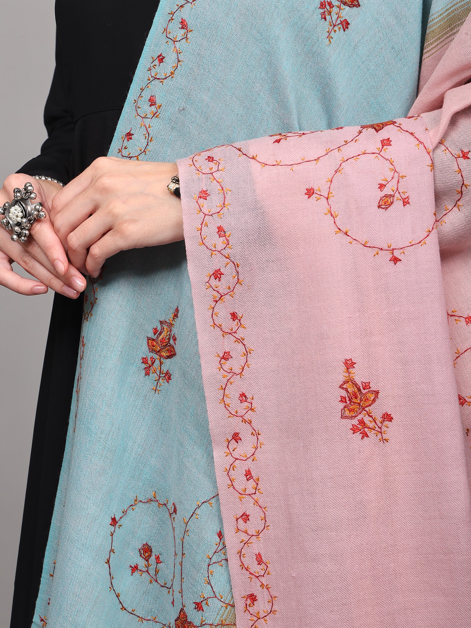 Slightly-Pink Sozni Embroidered Wool Shawl with Woven Giant Paisleys-Flowers