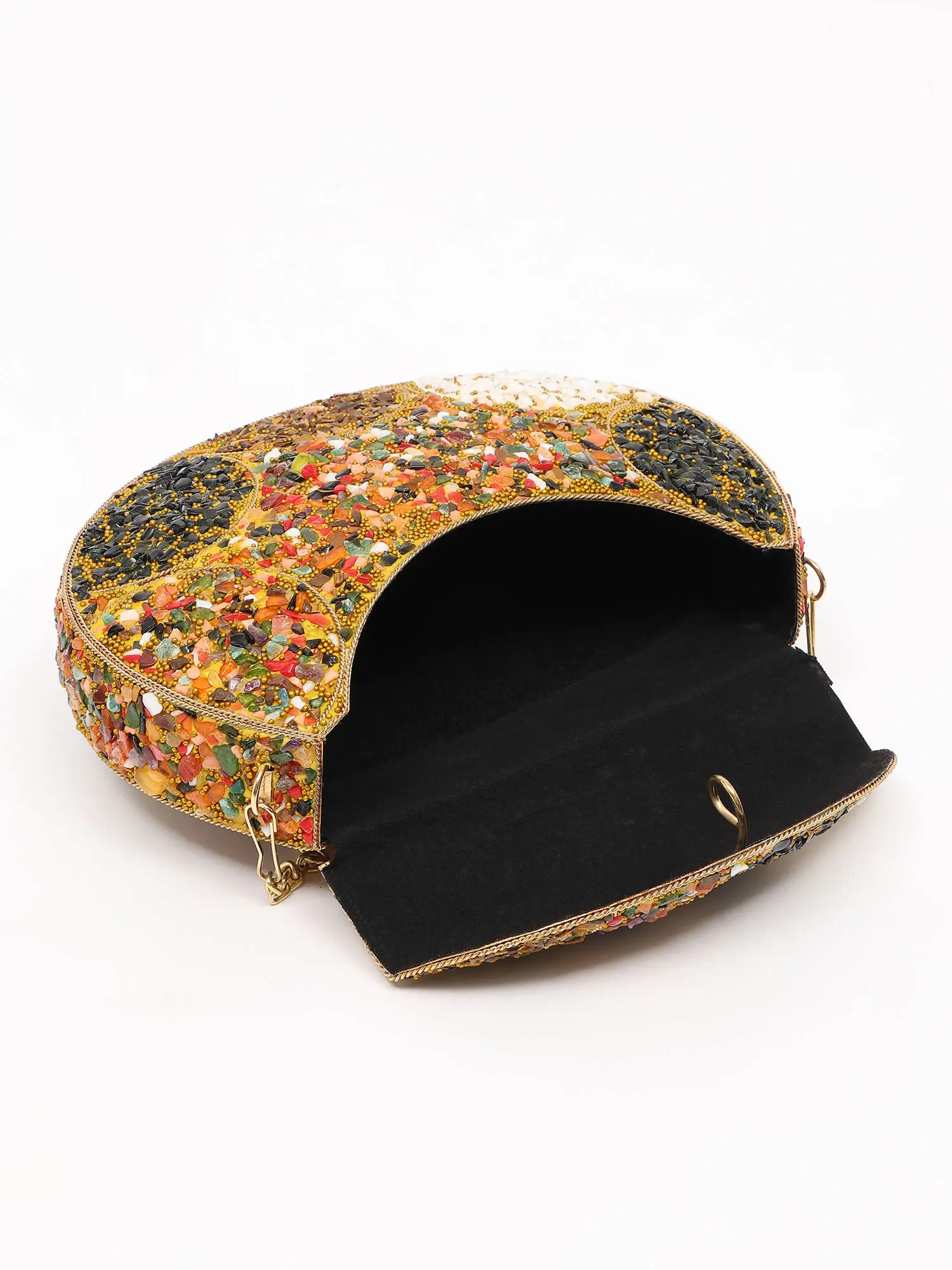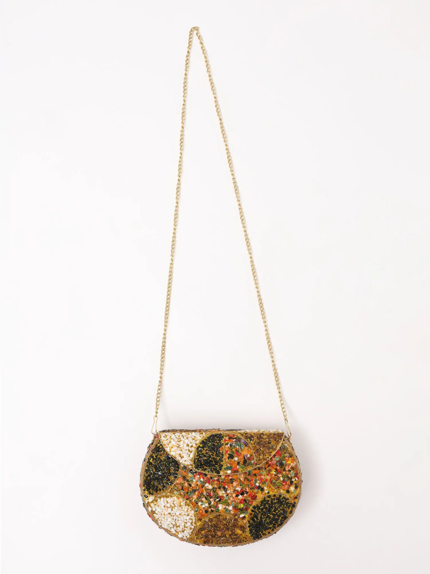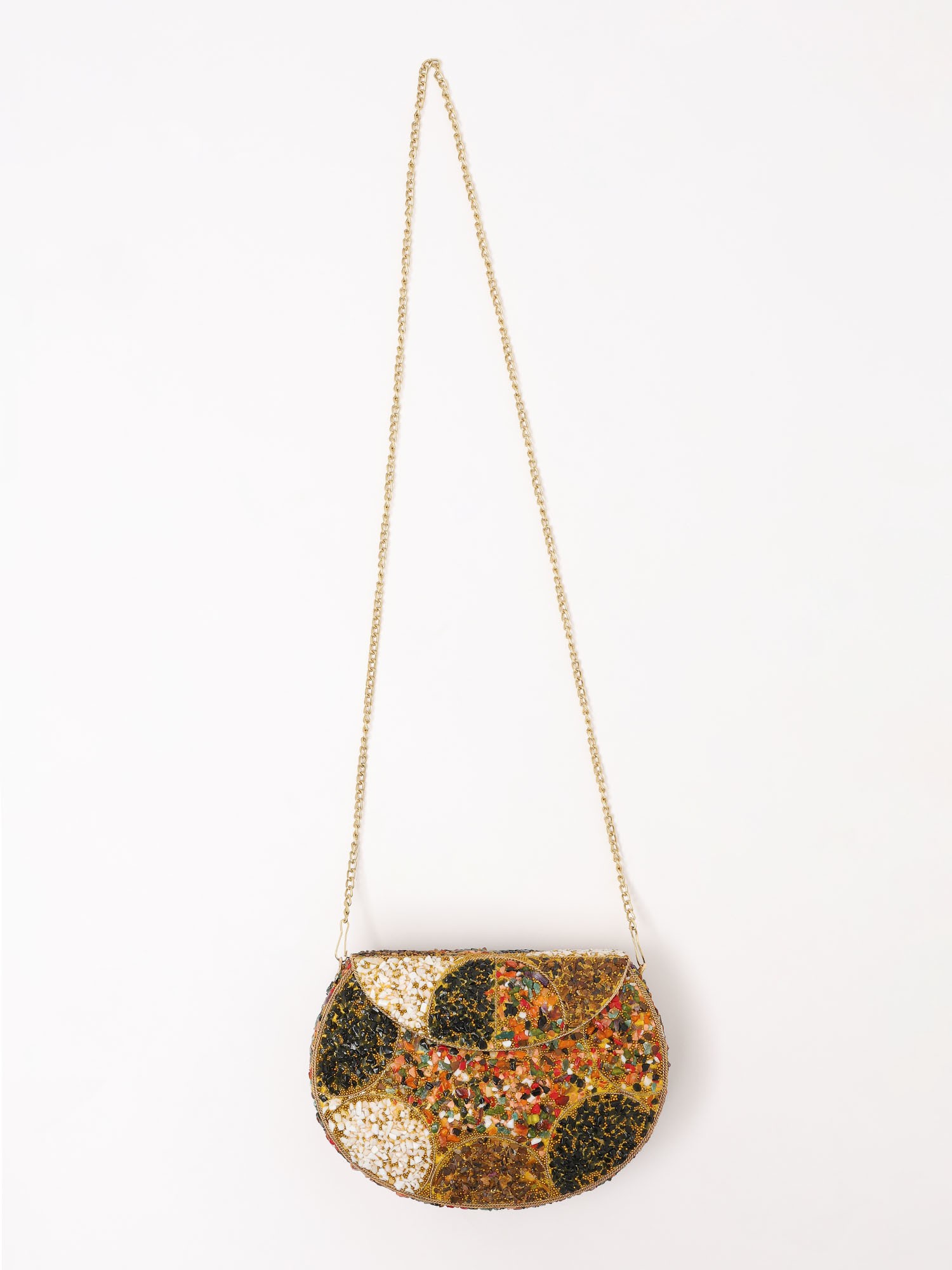 Ari-Embroidered Floral Long Patch with Studded Crystals