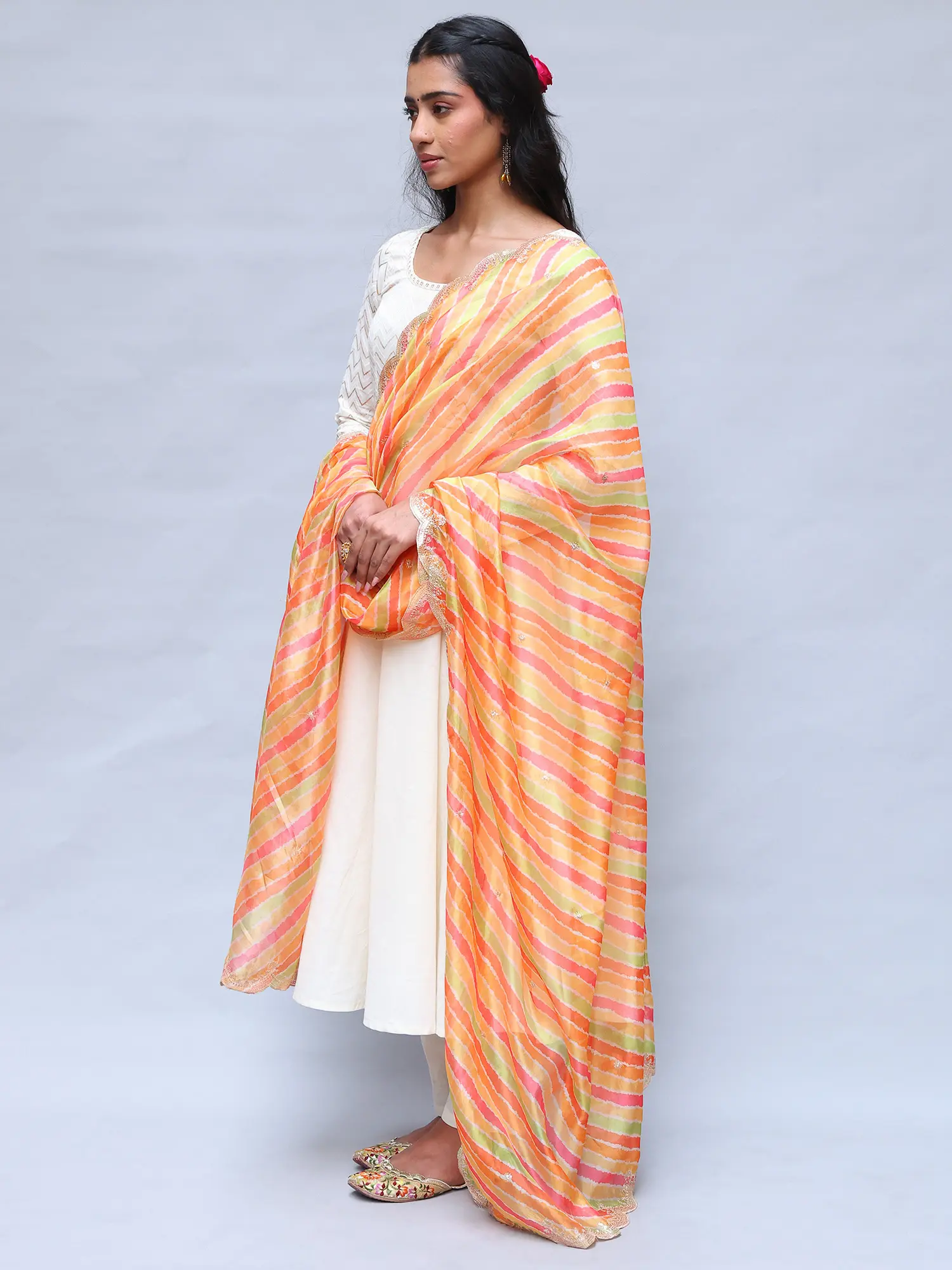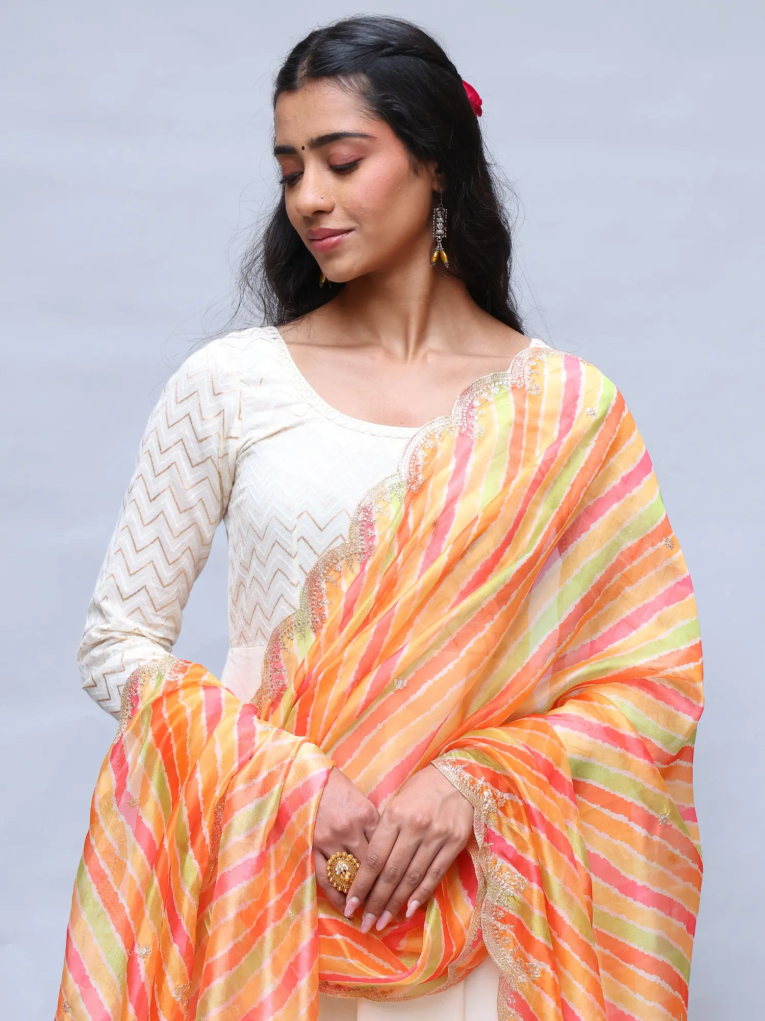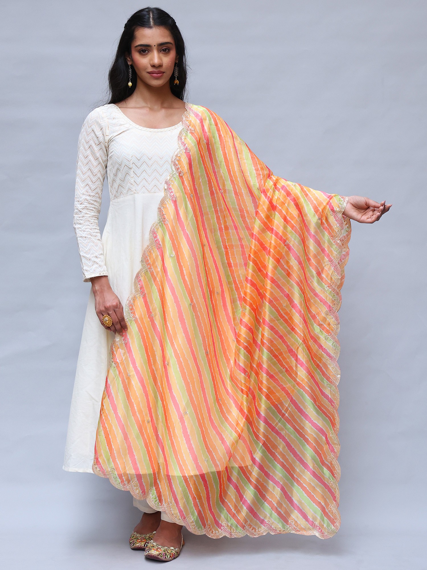 Rainbow Golden Thread woven Dupatta with Roman Stripes Pattern from Amritsar