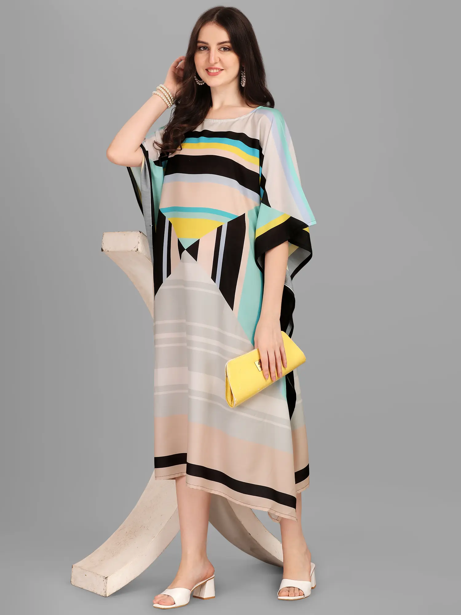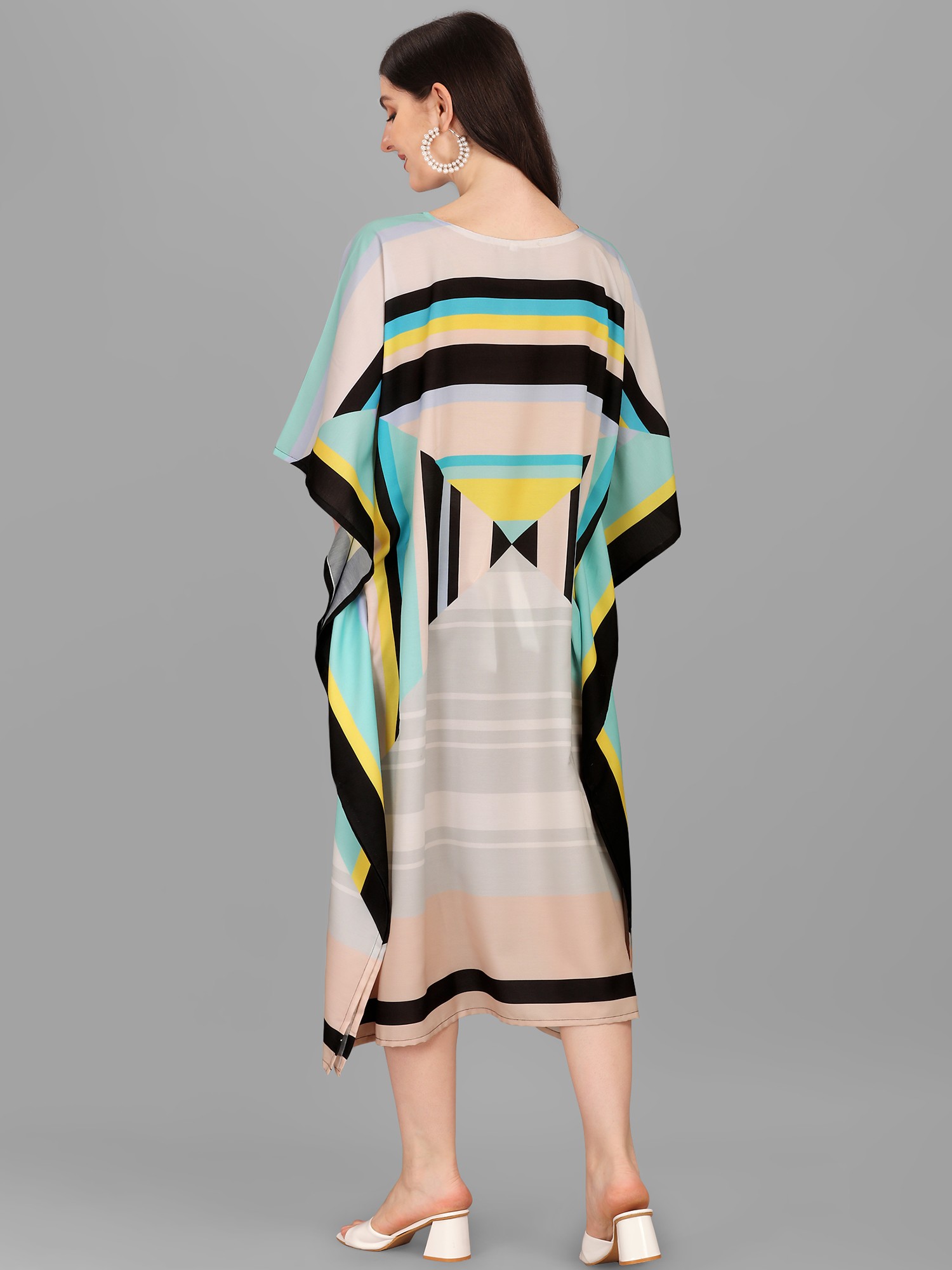 Black-Onyx Rayon Midi Kaftan with Printed Rectangle Shapes