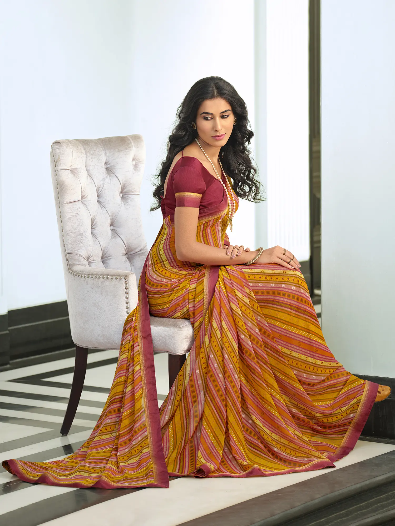 Caviar-Black Printed Cotton Sari with Buddha Head Motifs All-Over