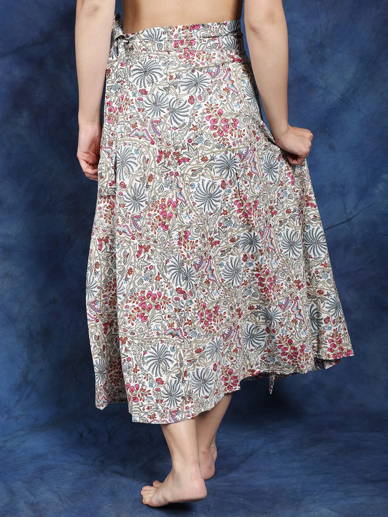 Get wrapped in the fragrant charm of floral prints with this multicolor long skirt.