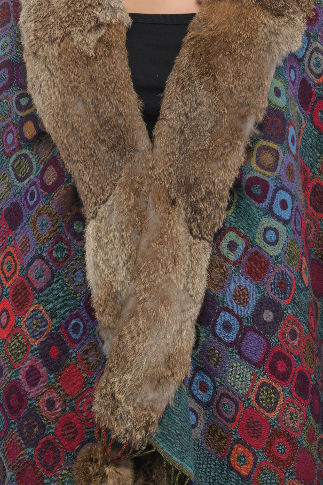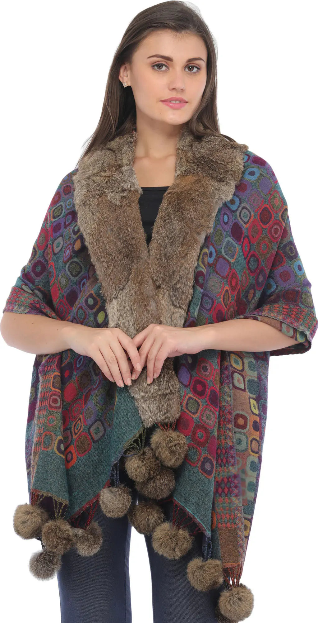 Black-Beauty Cape from Kashmir with Aari Hand-Embroidered Giant Paisley and Flowers