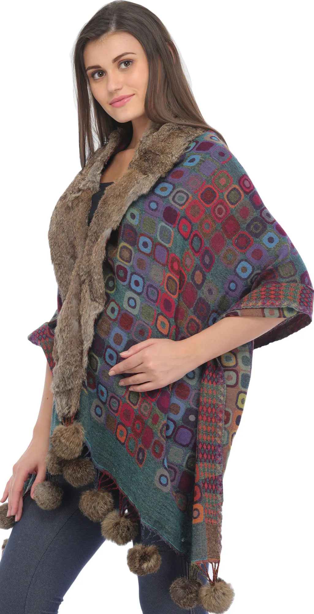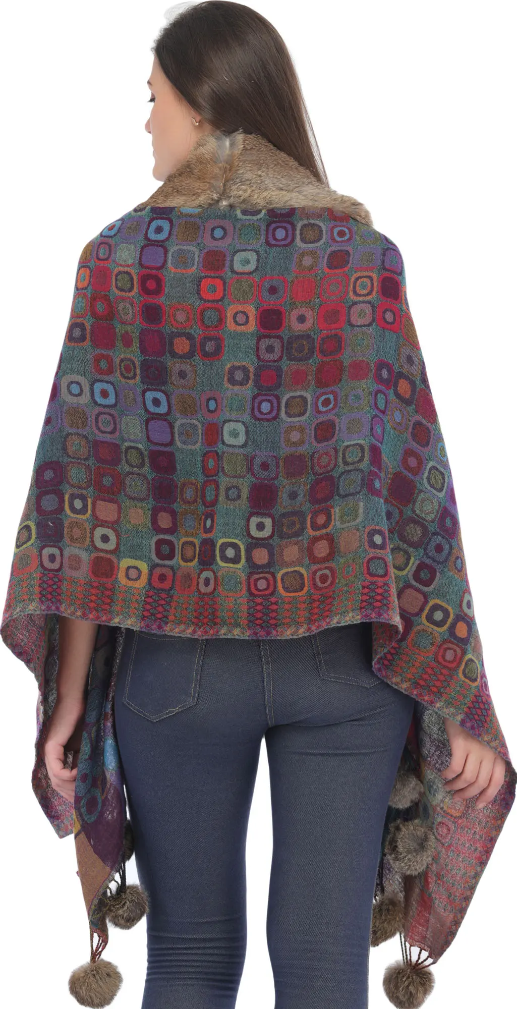 Savannah-Tan Pure Wool Cape Jacket with Embroidered Paisleys and Front Pockets from Kashmir