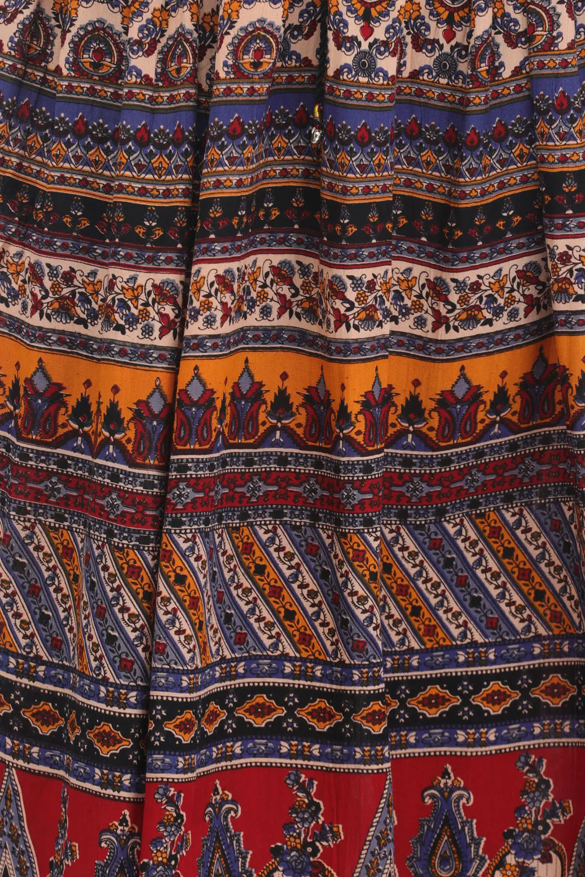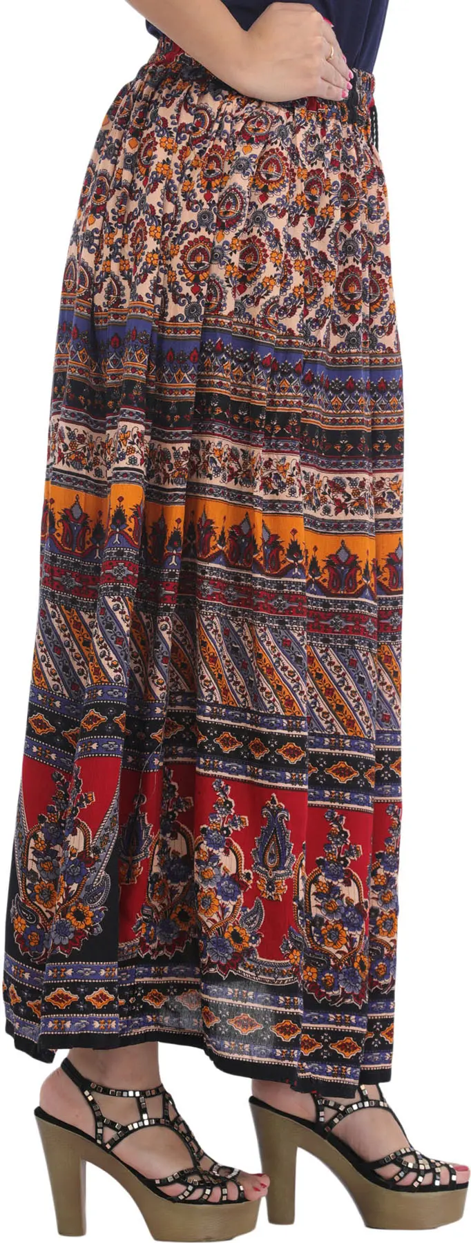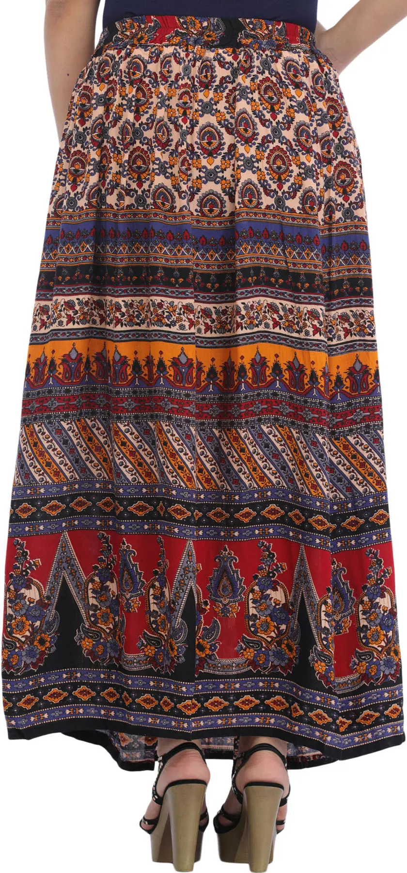 Red and Orange Elastic Long Skirt with Printed Elephants