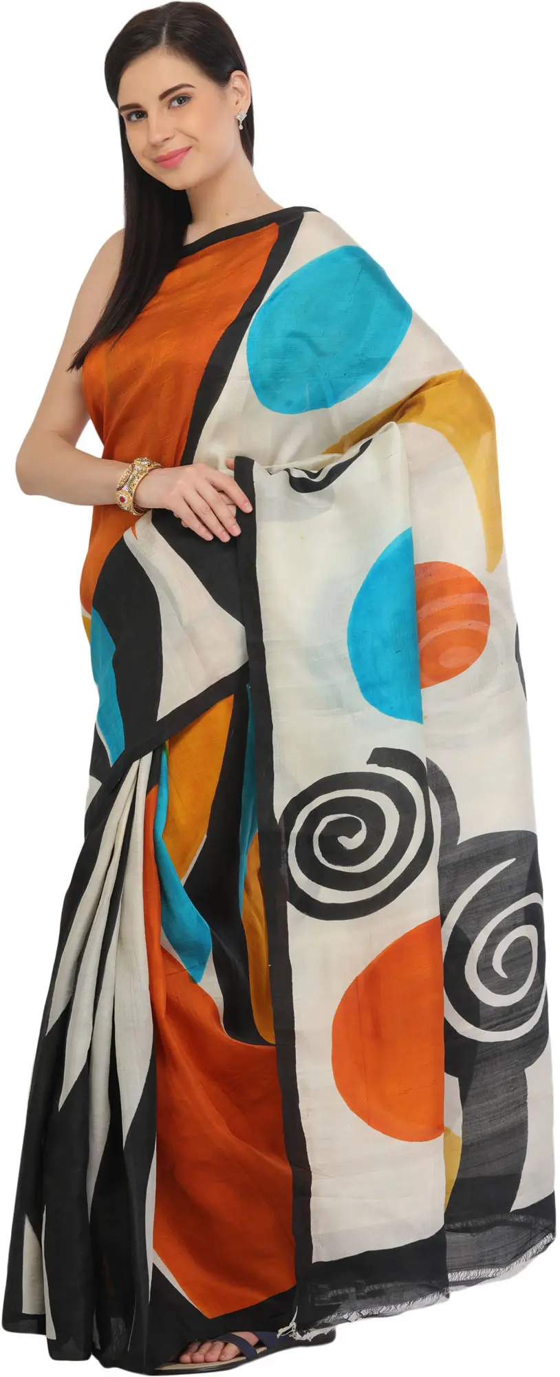 Reinventing tradition with a contemporary flair, the Multicolored Sari from Kolkata is a stunning fusion of classic elegance and modern aesthetics. Crafted from traditional silk, it takes a bold leap into the present with its modern digital print, breathing new life into a timeless canvas.