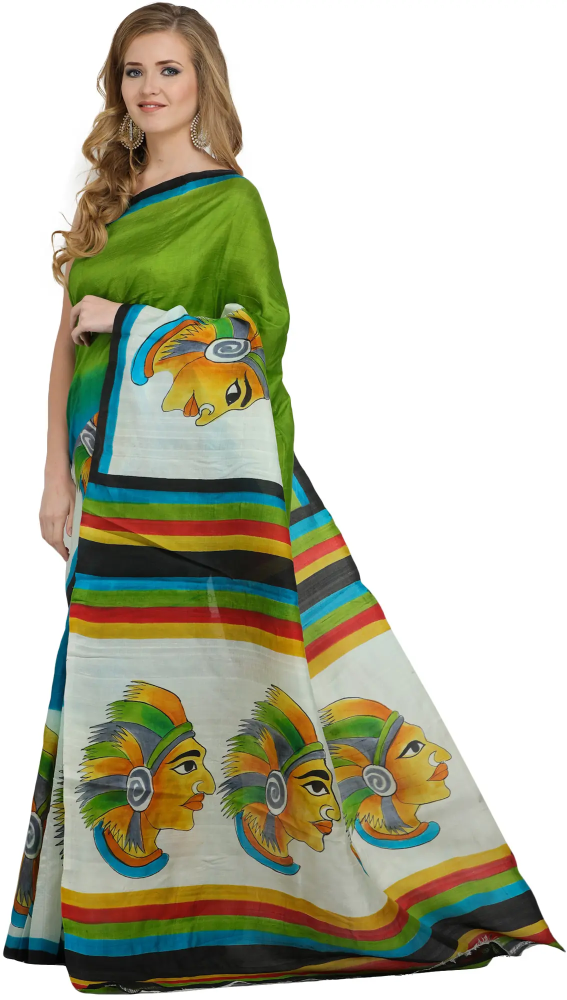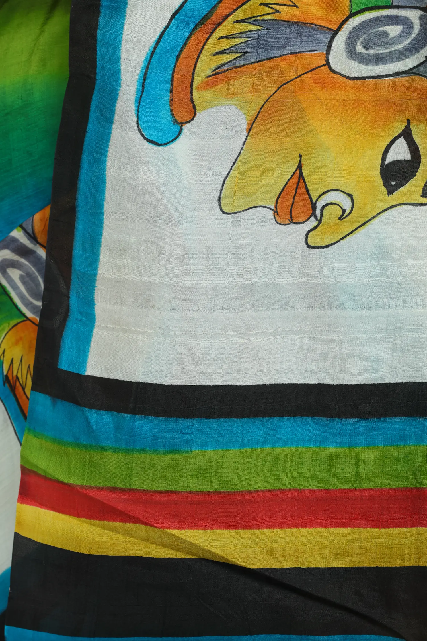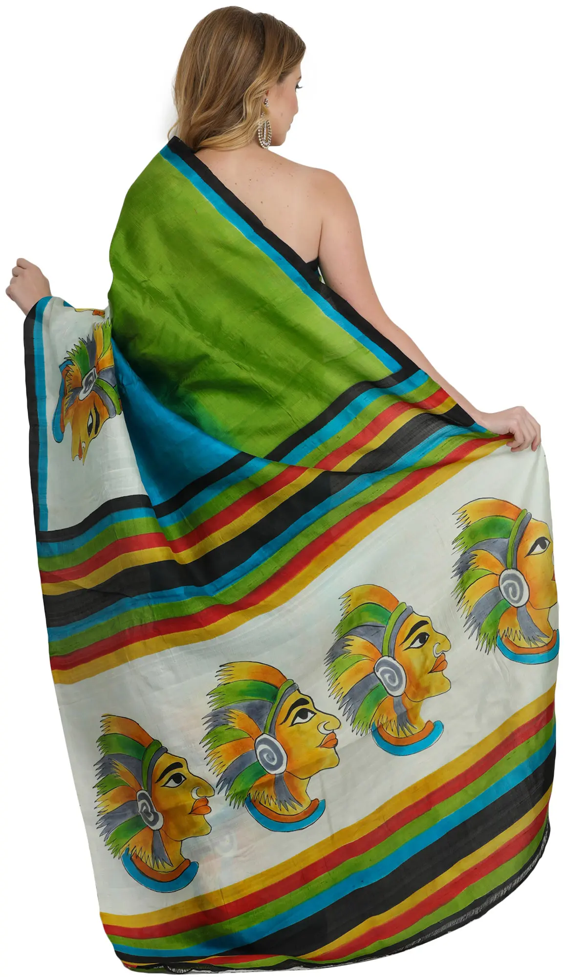 Silver and Black Double-Shaded Printed Sari with Self-Weave All-Over
