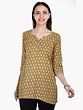 Mustard All-Over Butti Motif Cotton Handblock Printed Kurti