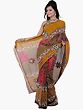 Mustard and Brown Bandhani Sari with Printed Paisleys and Flowers